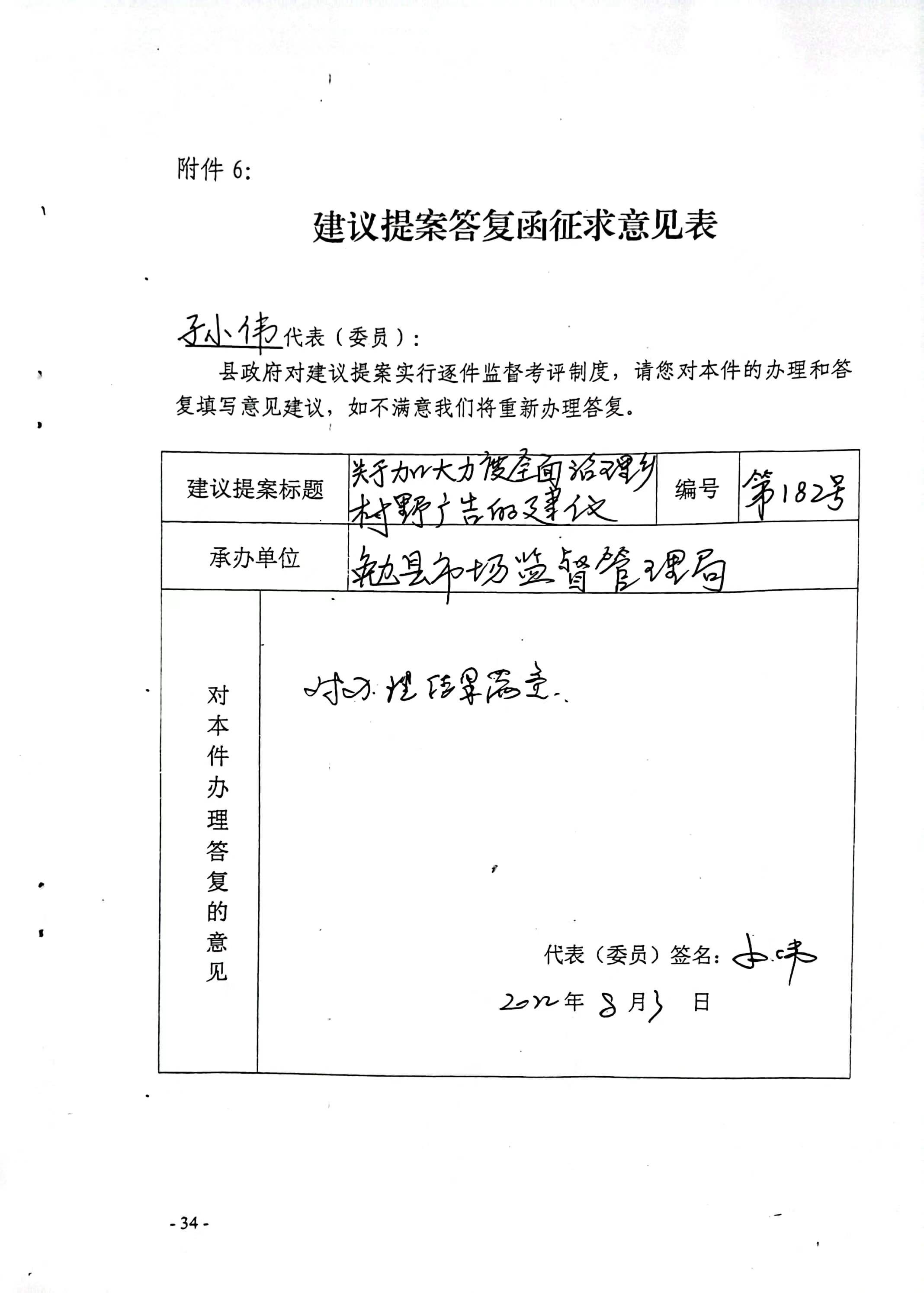 建 ⠂ 议:一是市场监管部门要切实加大对“野广告”“牛皮癣”违法行为的打击和整治力度。对有电话,有地址的“野广告”,要抓现行,切实加大违法乱贴乱画野广告的工作力度。二是建立举报有奖制度。设立举报奖励基金,对举报乱贴乱画行为并一经查实和处罚的,要给予举报人一定奖励。三是结合镇村规划在合适各路段重点地段设立户外广告栏,规范小广告张贴行为,减少乱贴乱画现象。