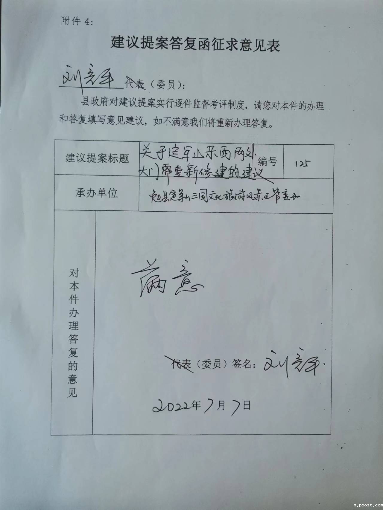 关于定军山东西两处大门需重新修建的建议