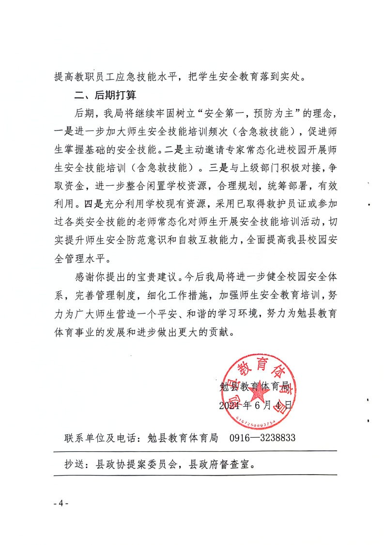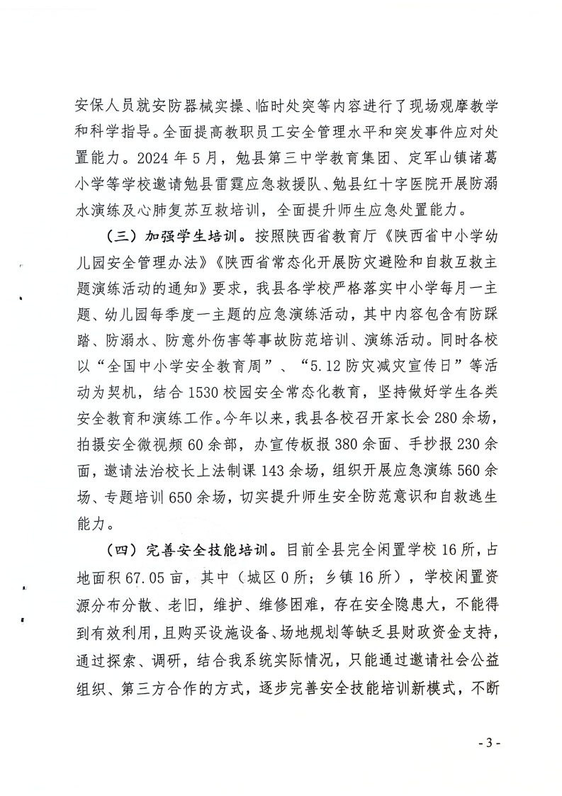 如果教体系统能组建一个自己的安全技能培训基地。岗前培训+在职提高(具体培训方式教体局可以根据具体情况制定)结合起来,让每个老师都能掌握全面的安全知识、应急技能,这样老师可以对学生随时讲安全、随处展技能,就可以让安全教育真正的学有所得、学有所成、学有所用。