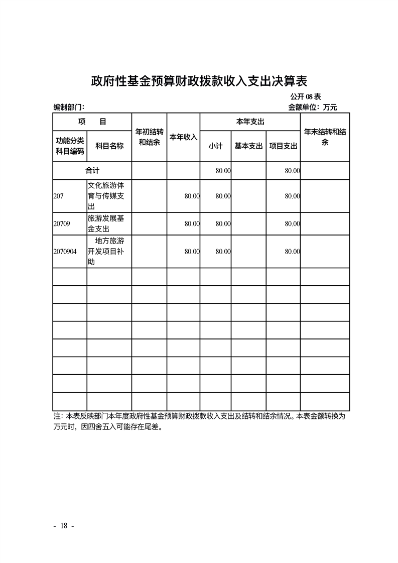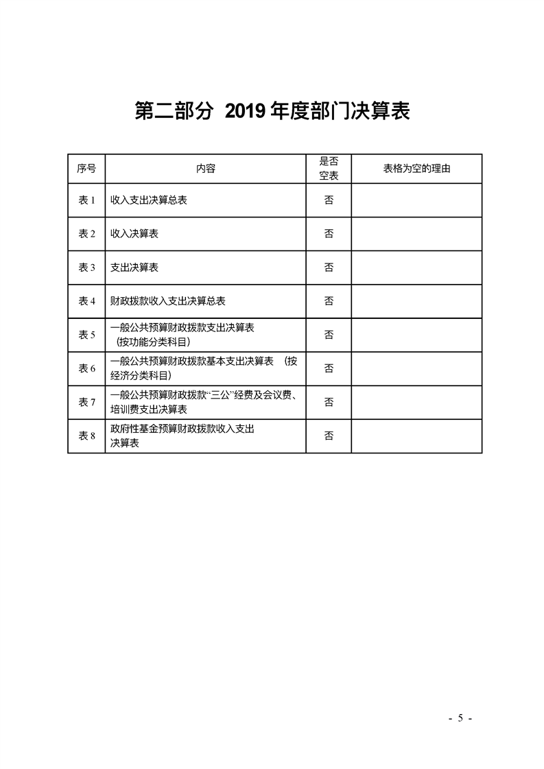 2019年县级部门决算公开目录