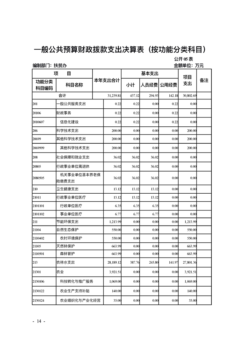 勉县扶贫办2019年部门决算公开