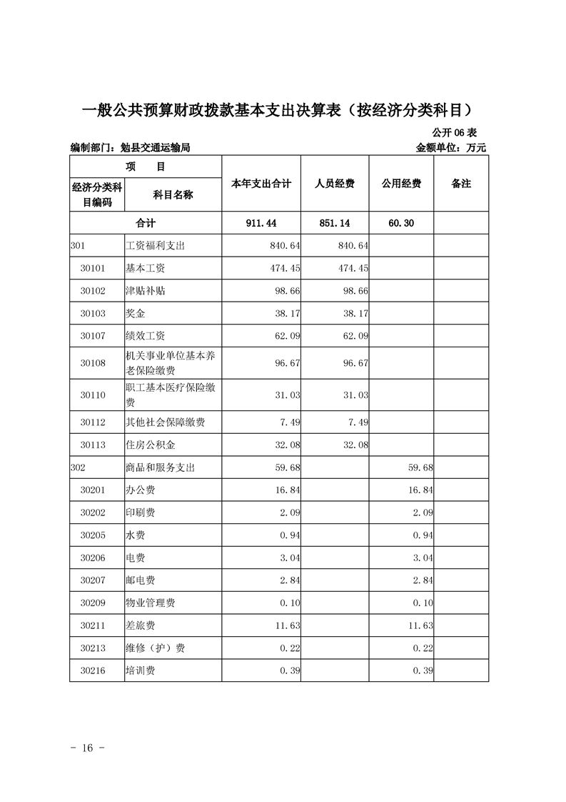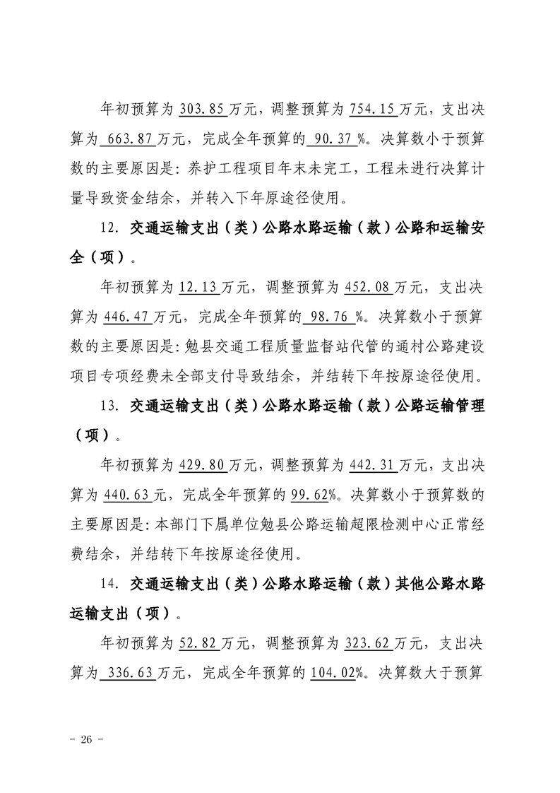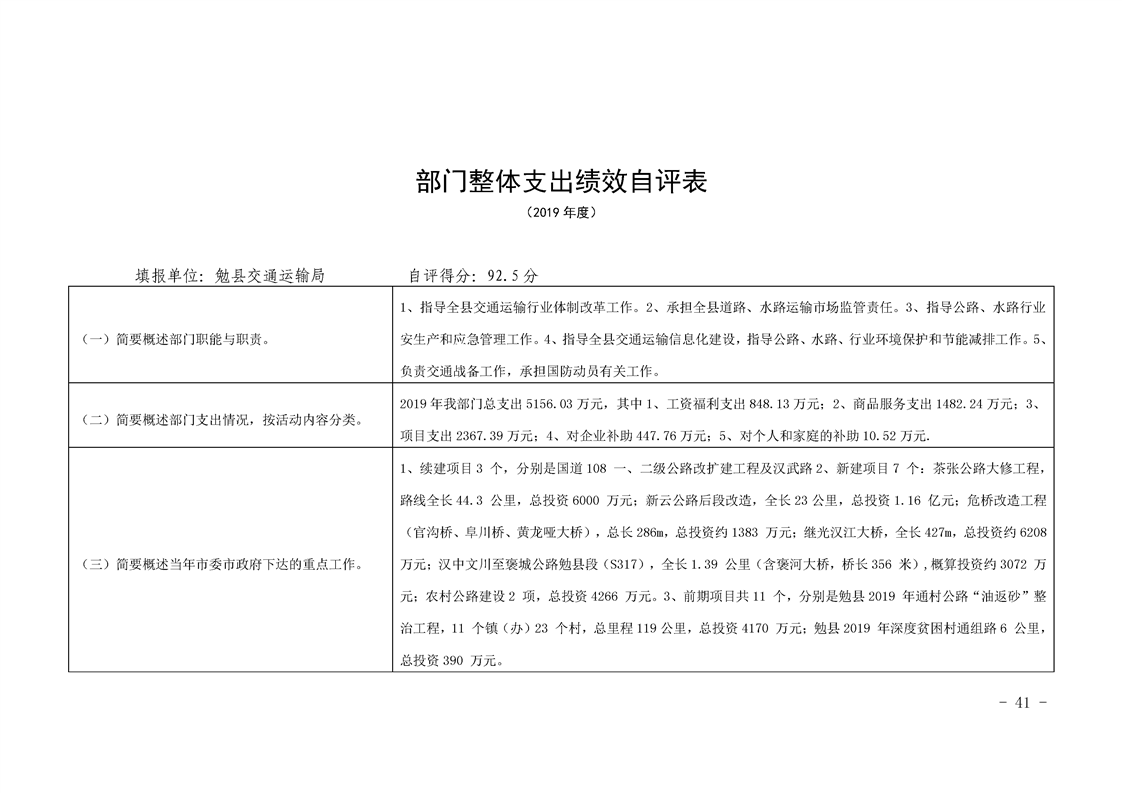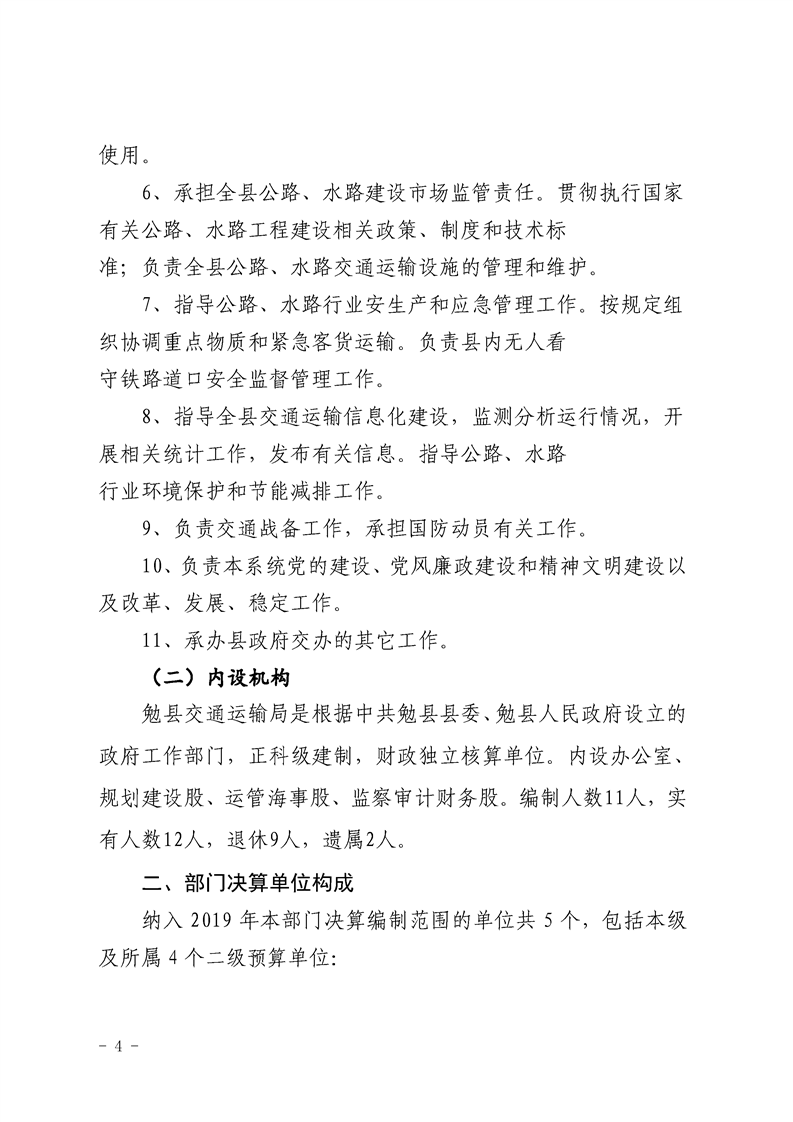 勉县交通运输局2019年部门决算公开