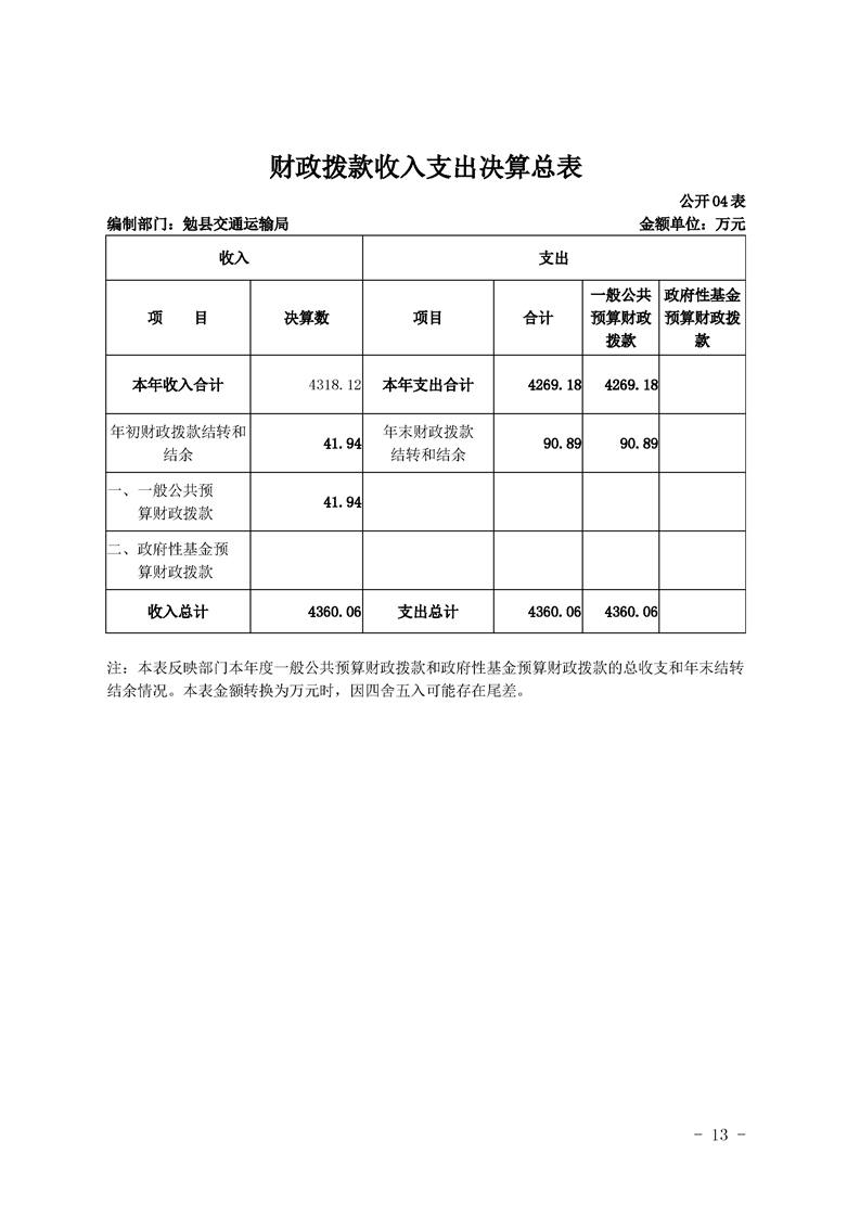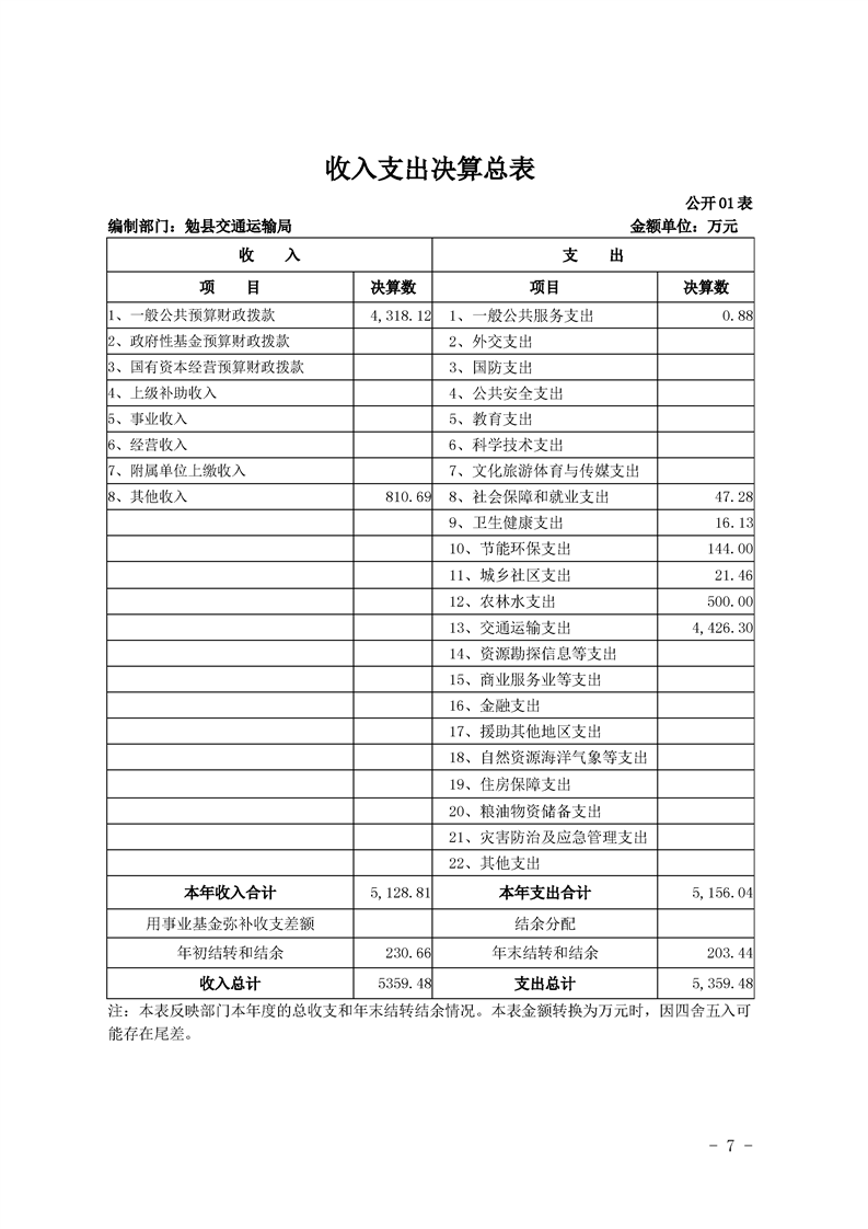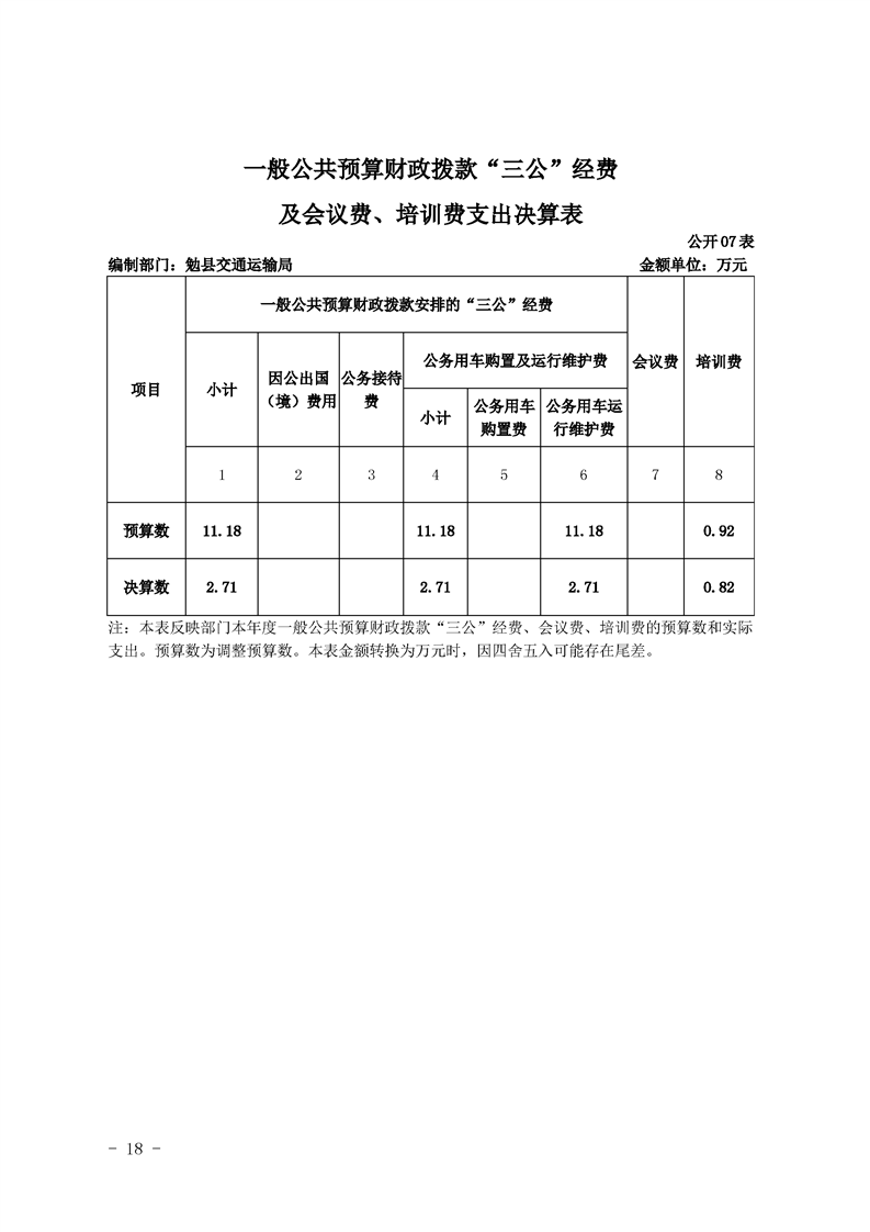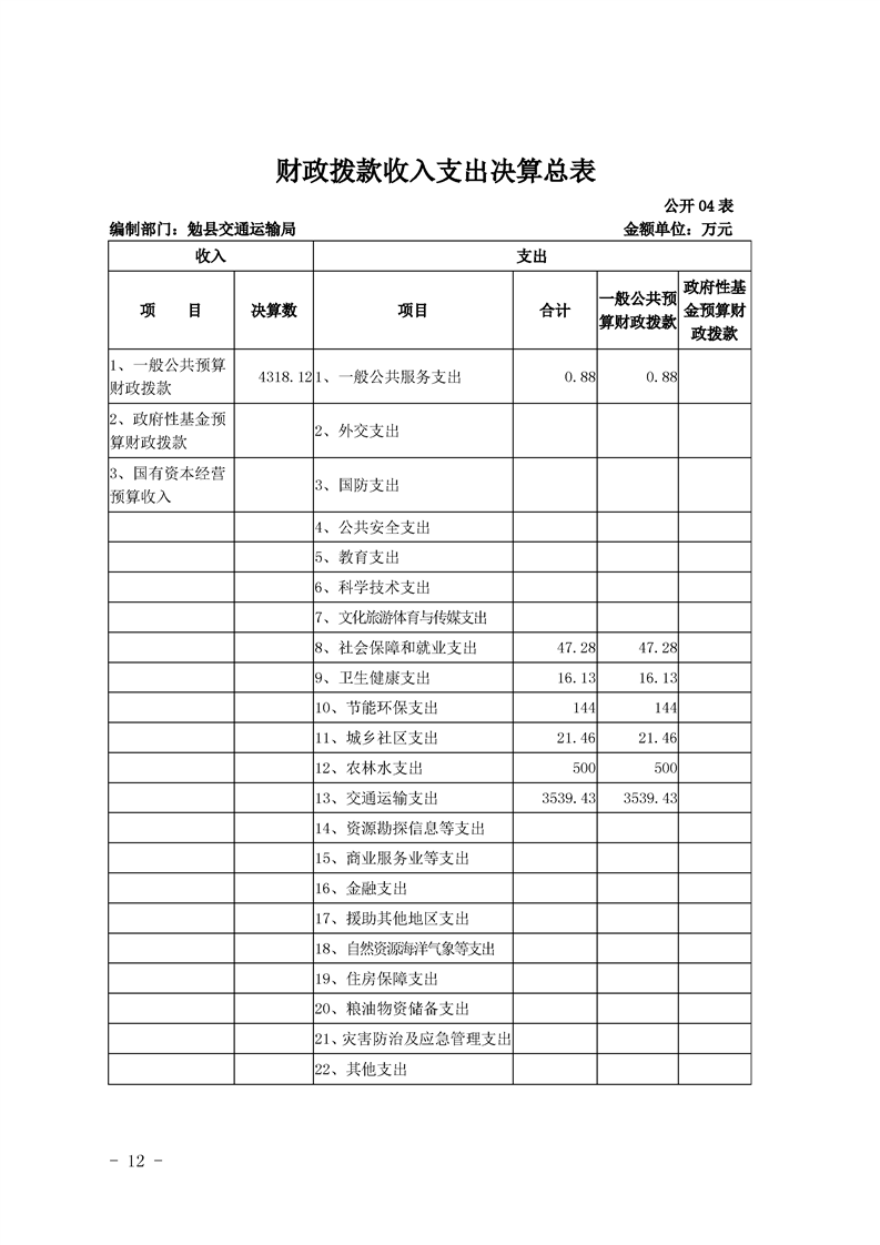 勉县交通运输局2019年部门决算公开