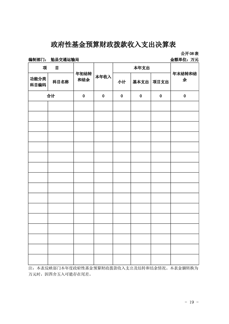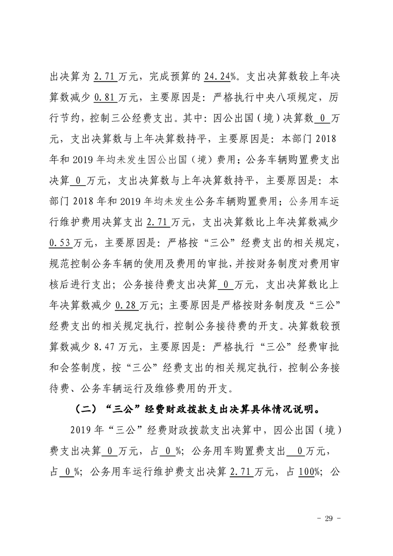 2019年县级部门决算公开目录