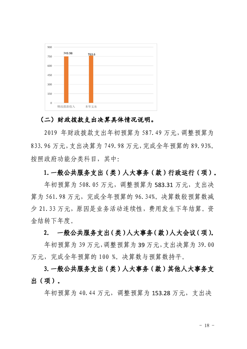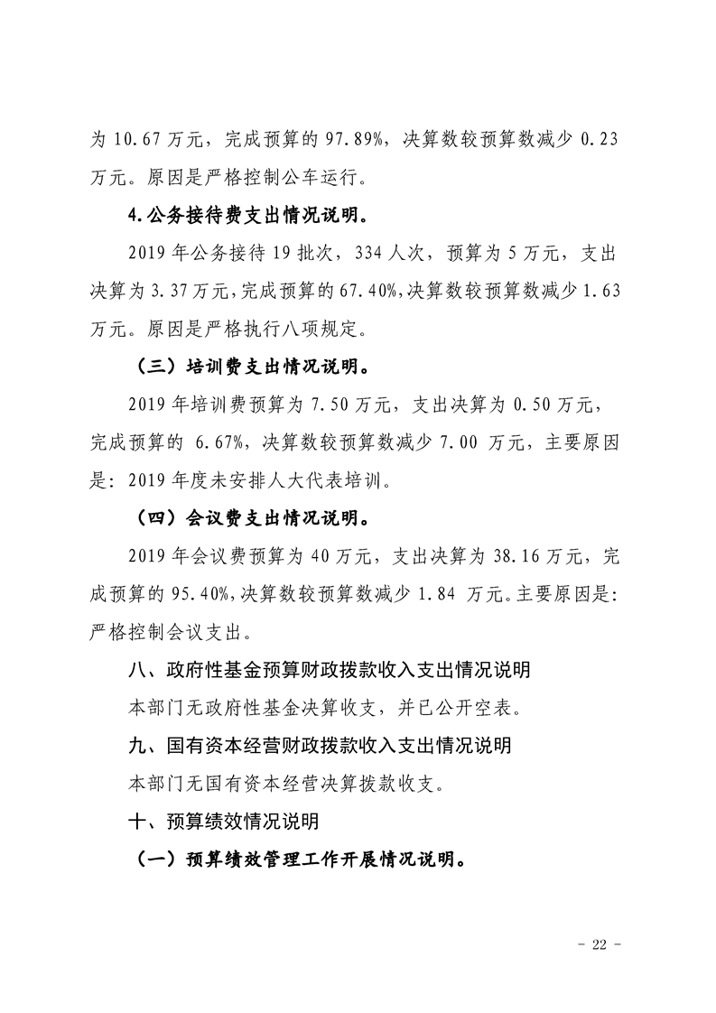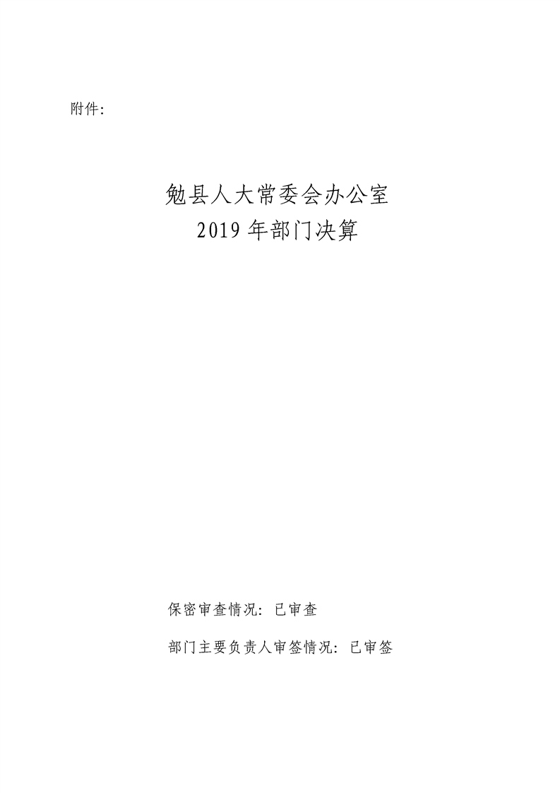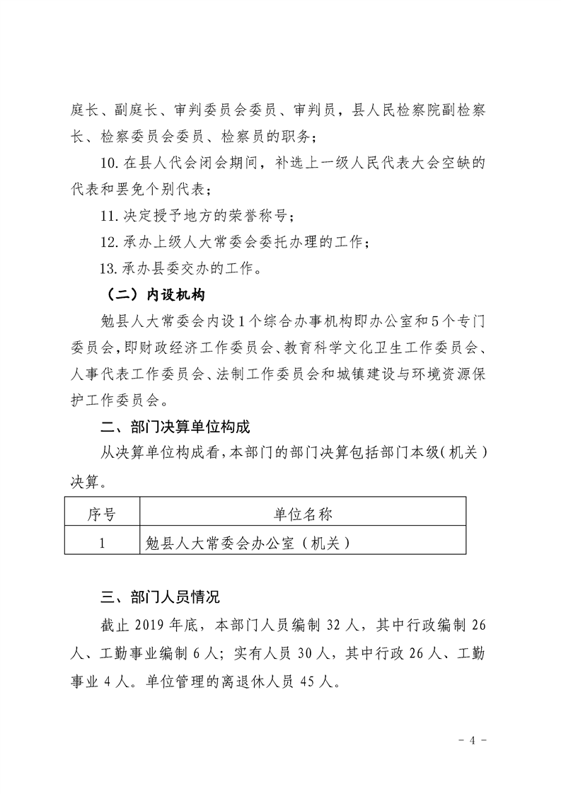 勉县人大常委会办公室2019年部门决算公开
