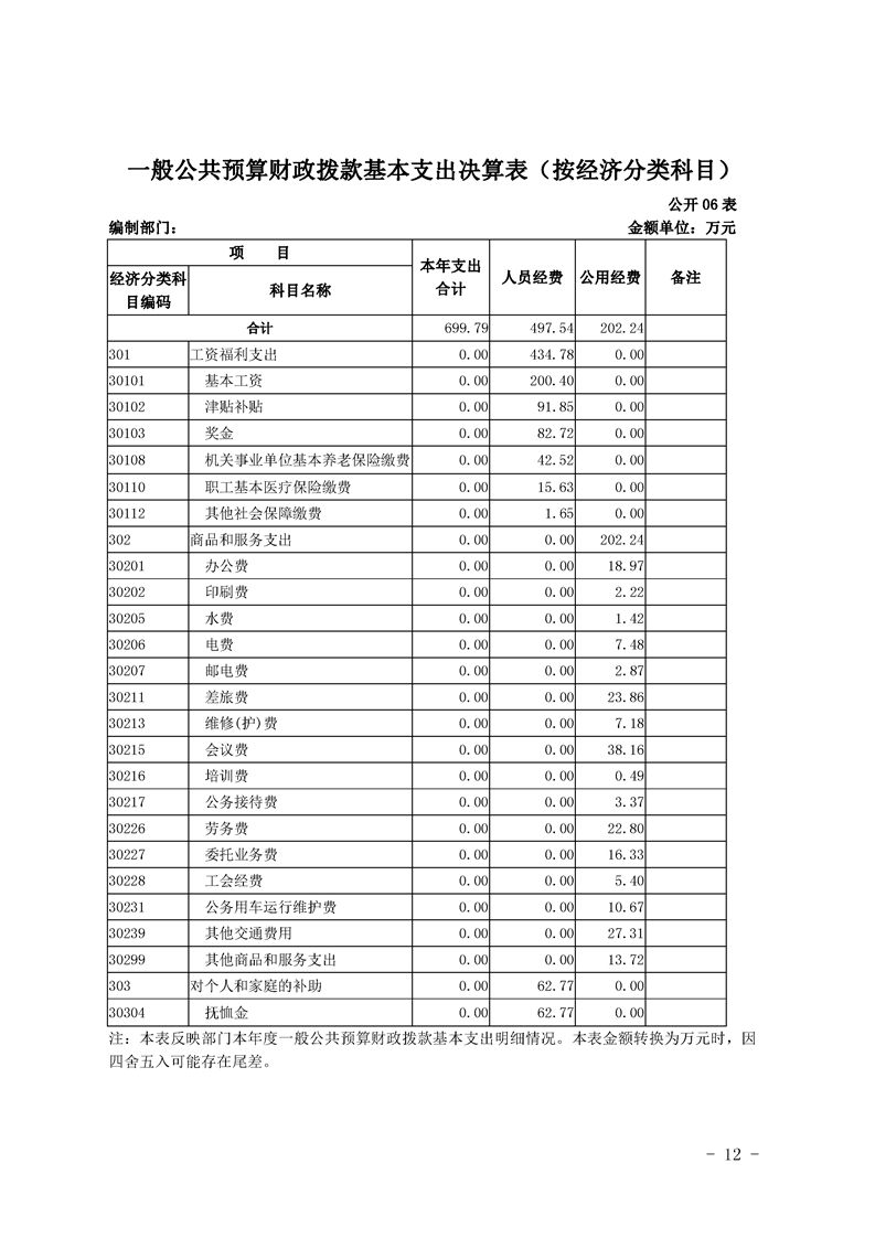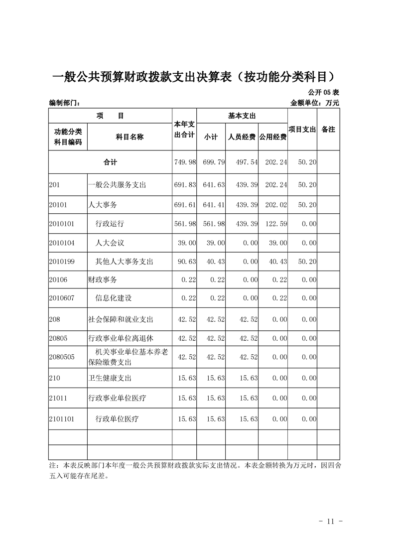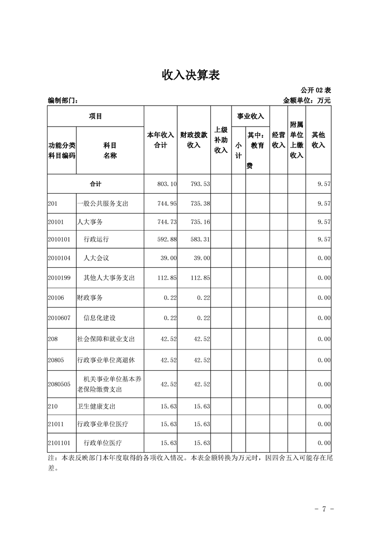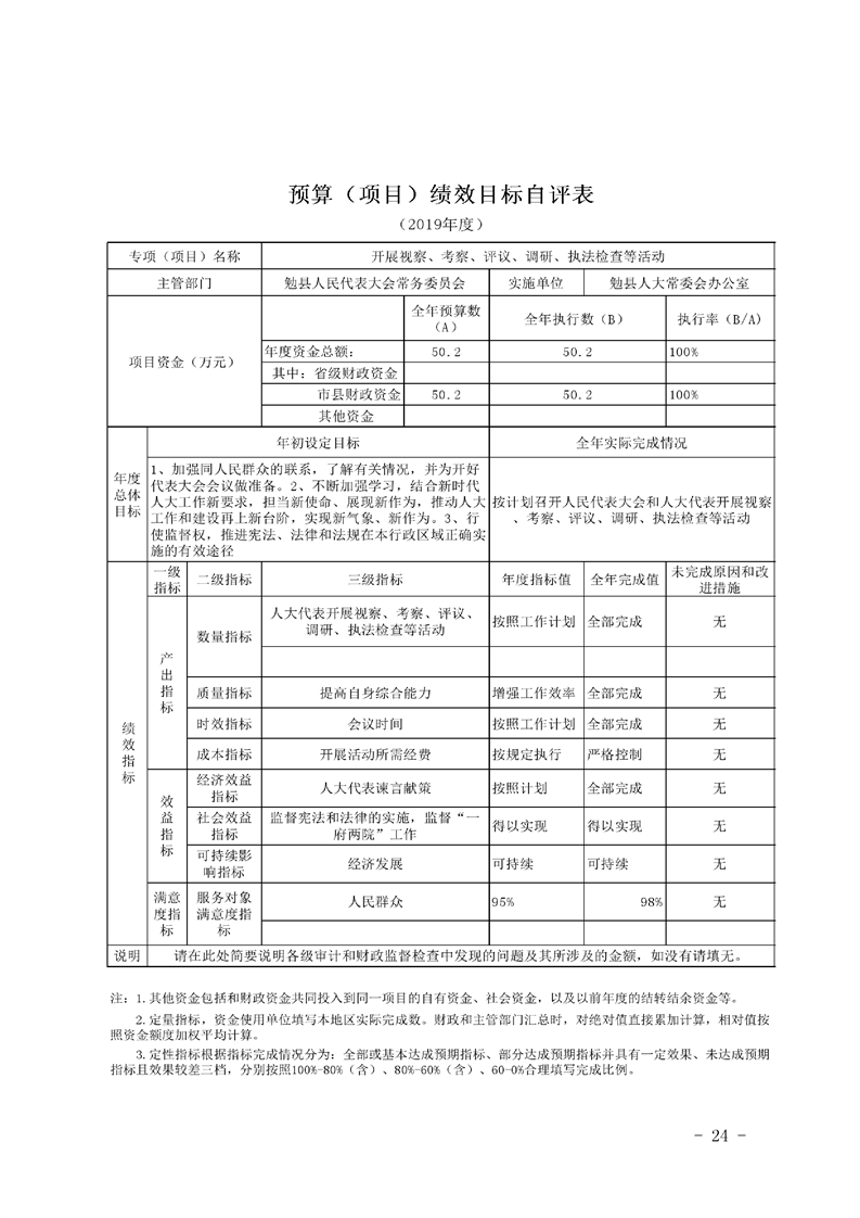 勉县人大常委会办公室2019年部门决算公开