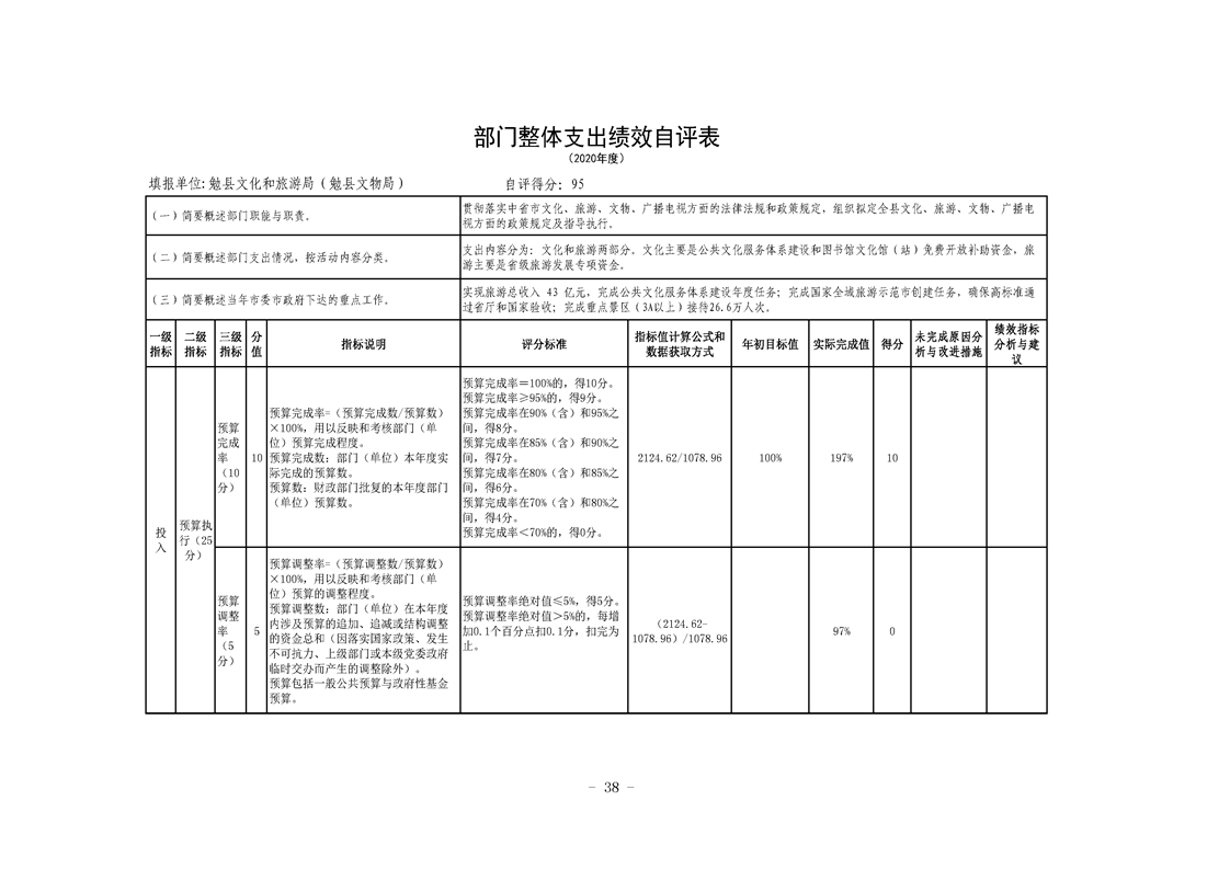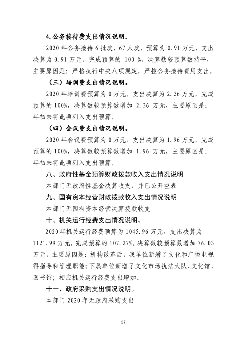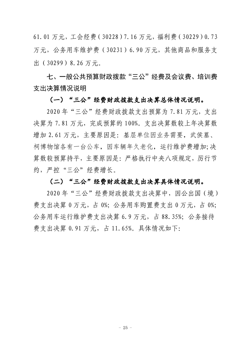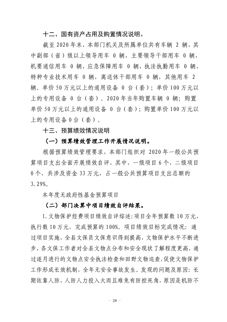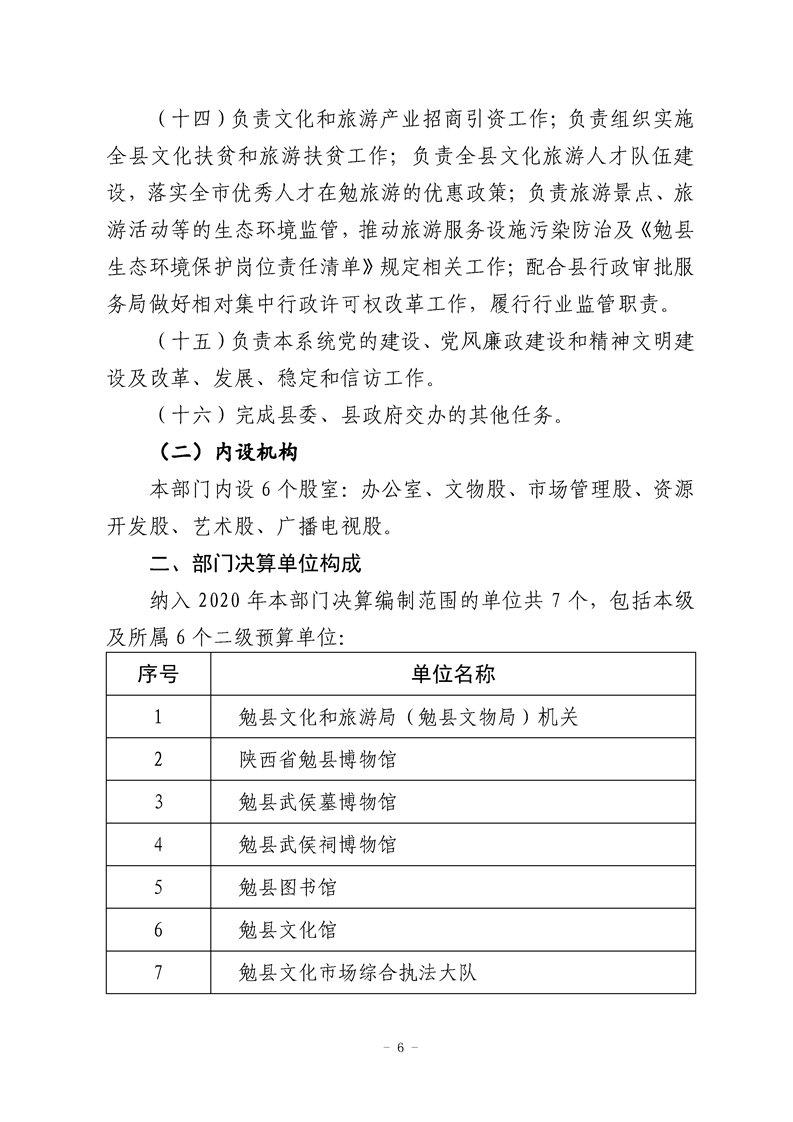 勉县文化和旅游局(勉县文物局)2020年勉县决算公开