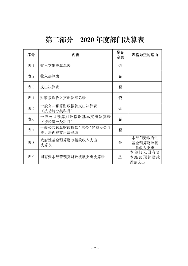 2020年县级部门决算公开目录