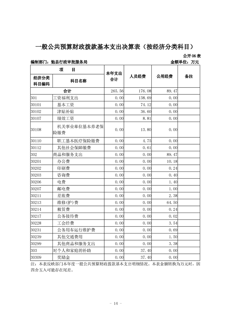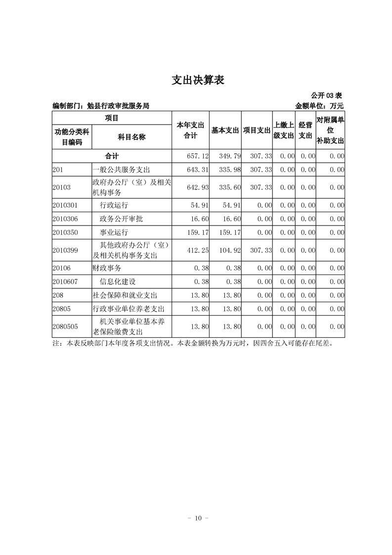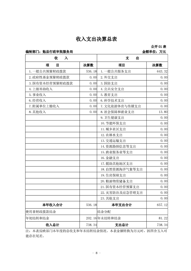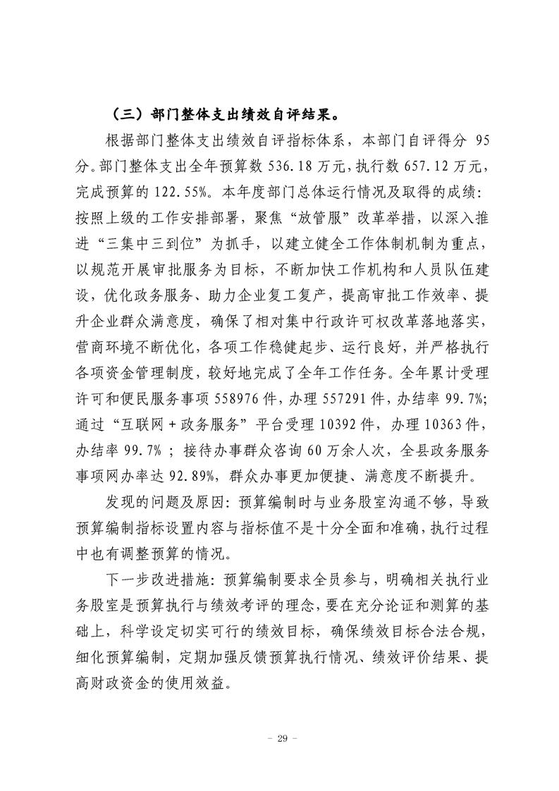勉县行政审批服务局2020年部门决算
