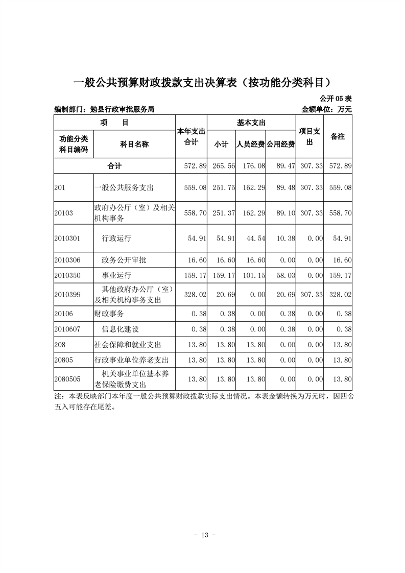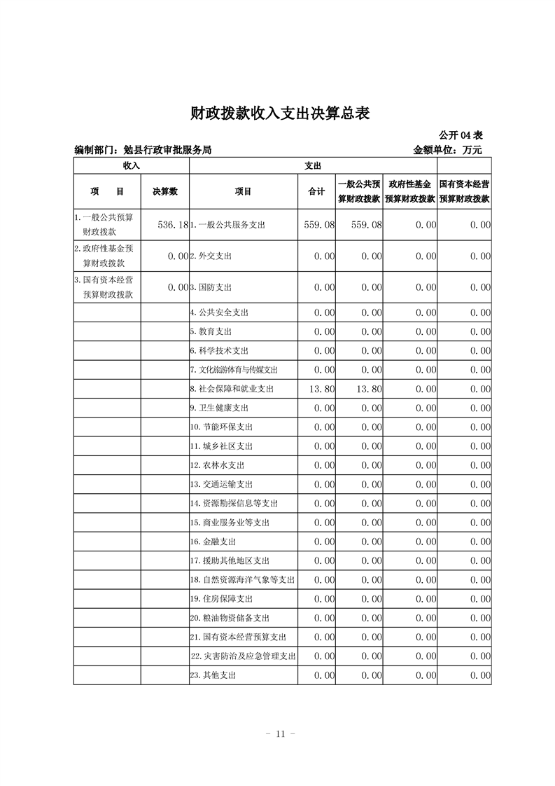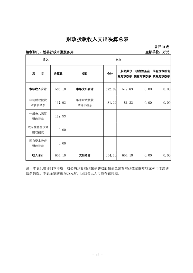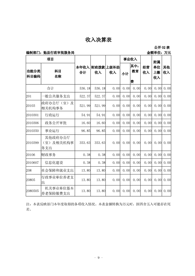勉县行政审批服务局2020年部门决算