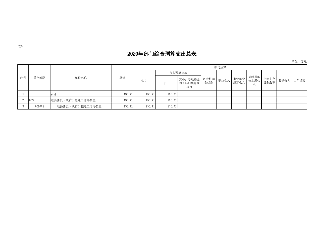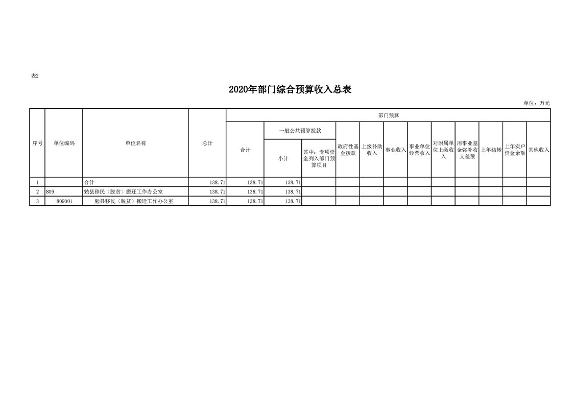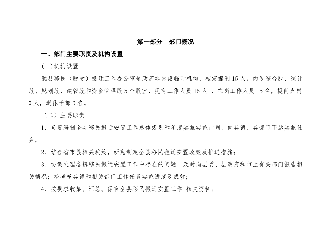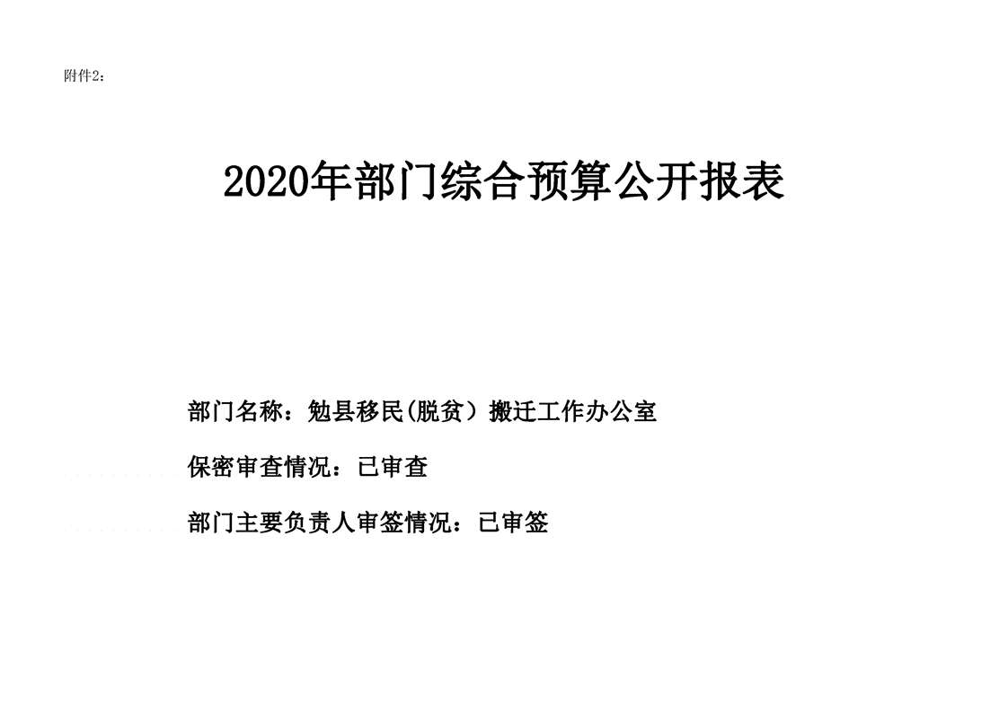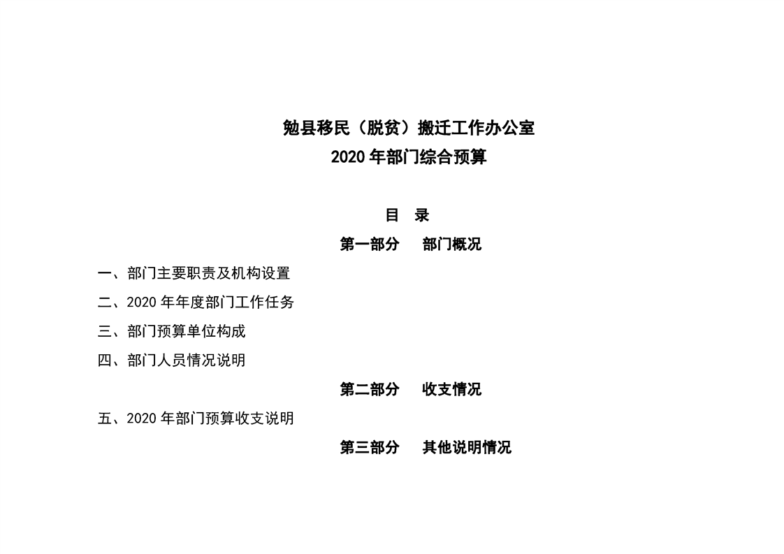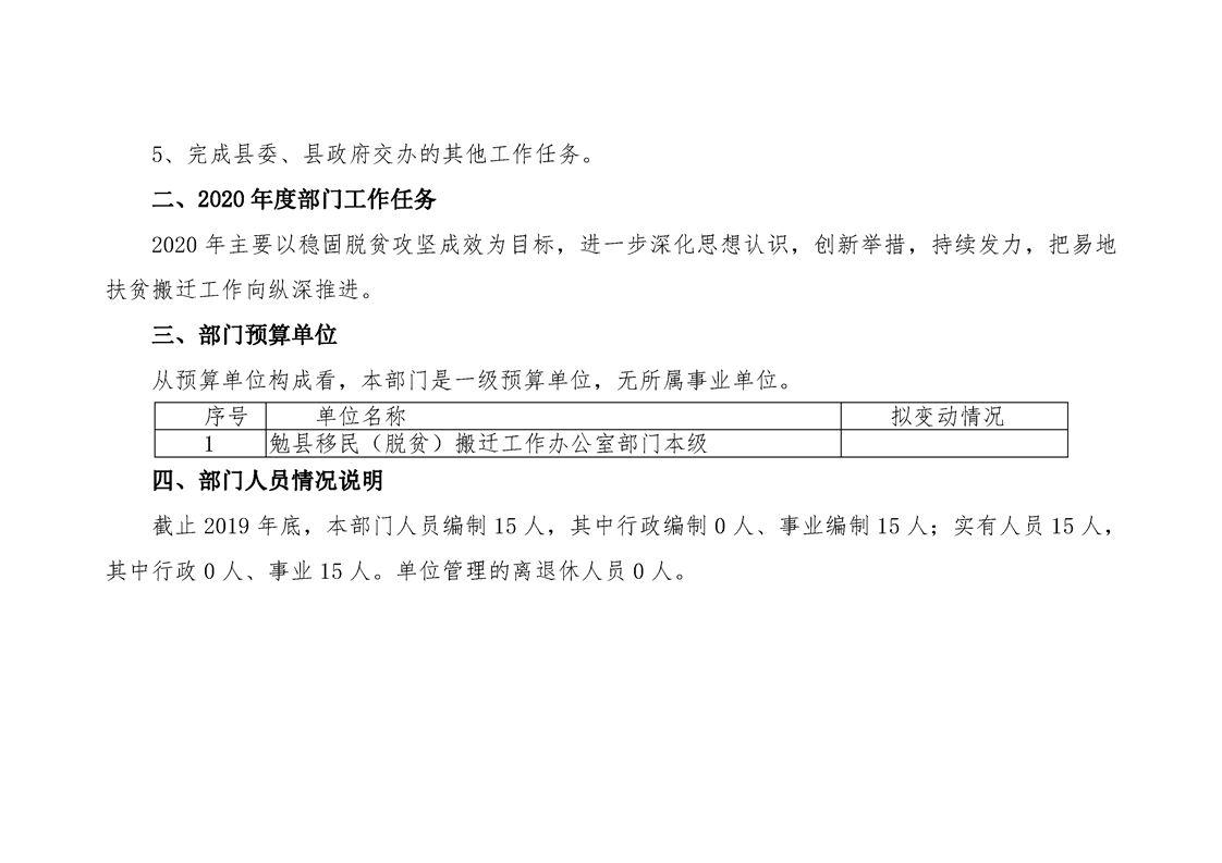 勉县移民(脱贫)搬迁工作办公室2020年部门预算公开