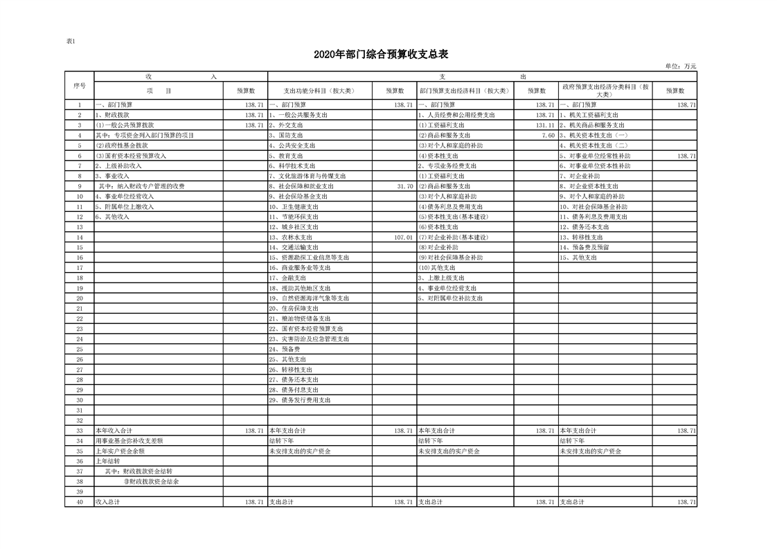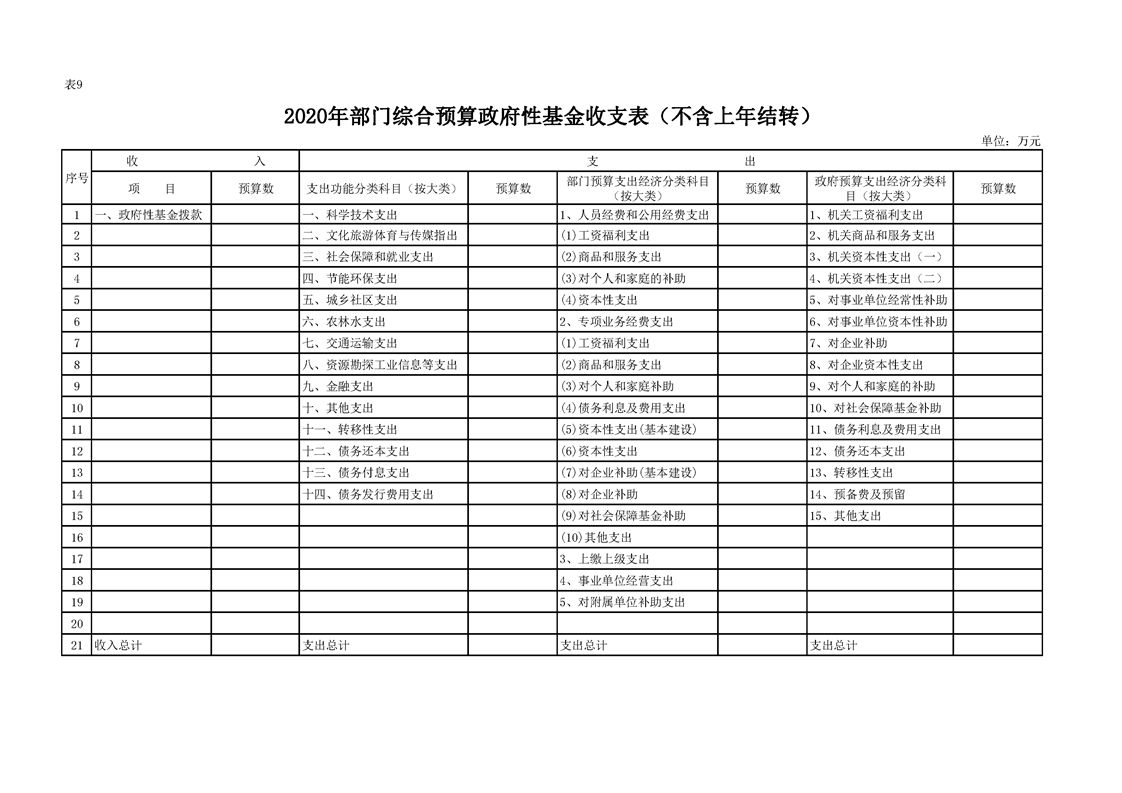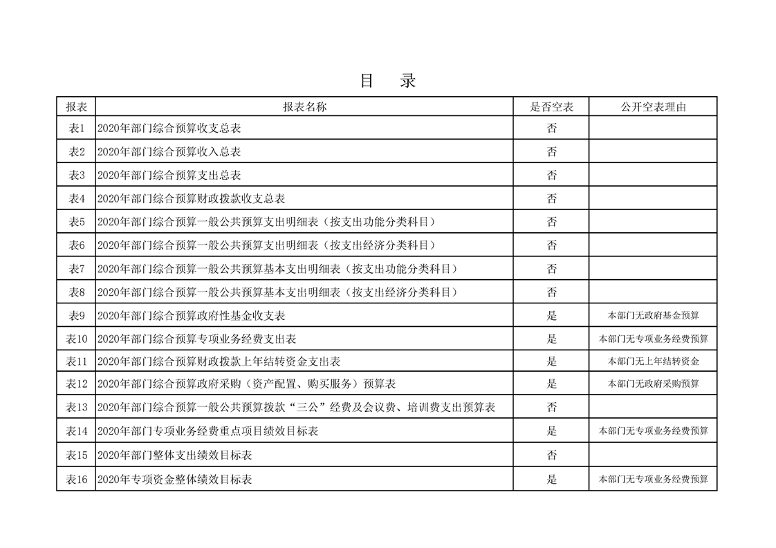 2020年县级部门预算公开目录