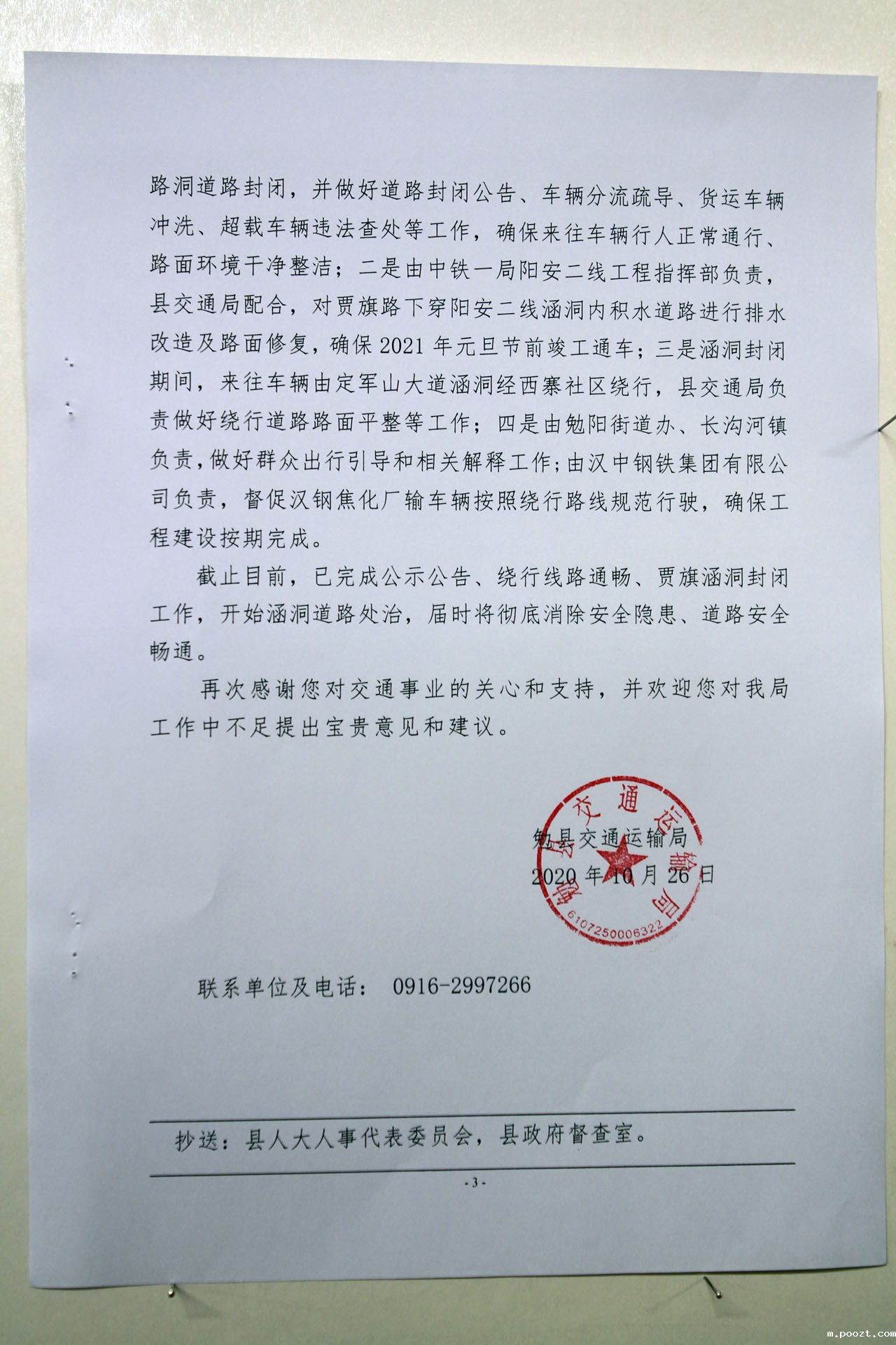 内 容:勉县勉阳街道办辖区内勉长路是勉阳街道办贾旗村、汉中地区钢铁厂、勉县长沟河镇感经之路,贾旗段阳安铁路涵洞自从投入使用后,冬季结冰,夏季积水,老百姓怨声载道,多次上访诉求要求解决,