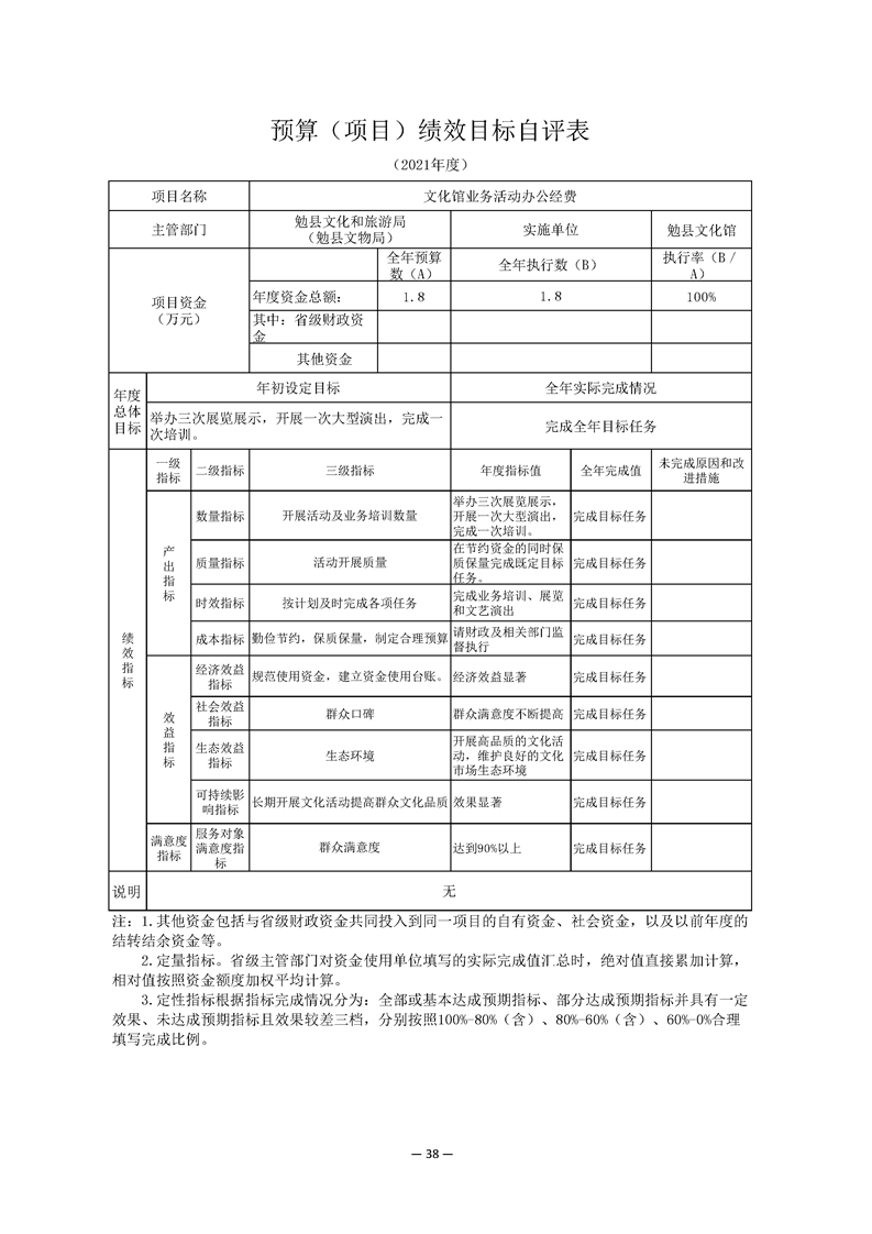 勉县文化和旅游局(勉县文物局)2021年部门决算公开