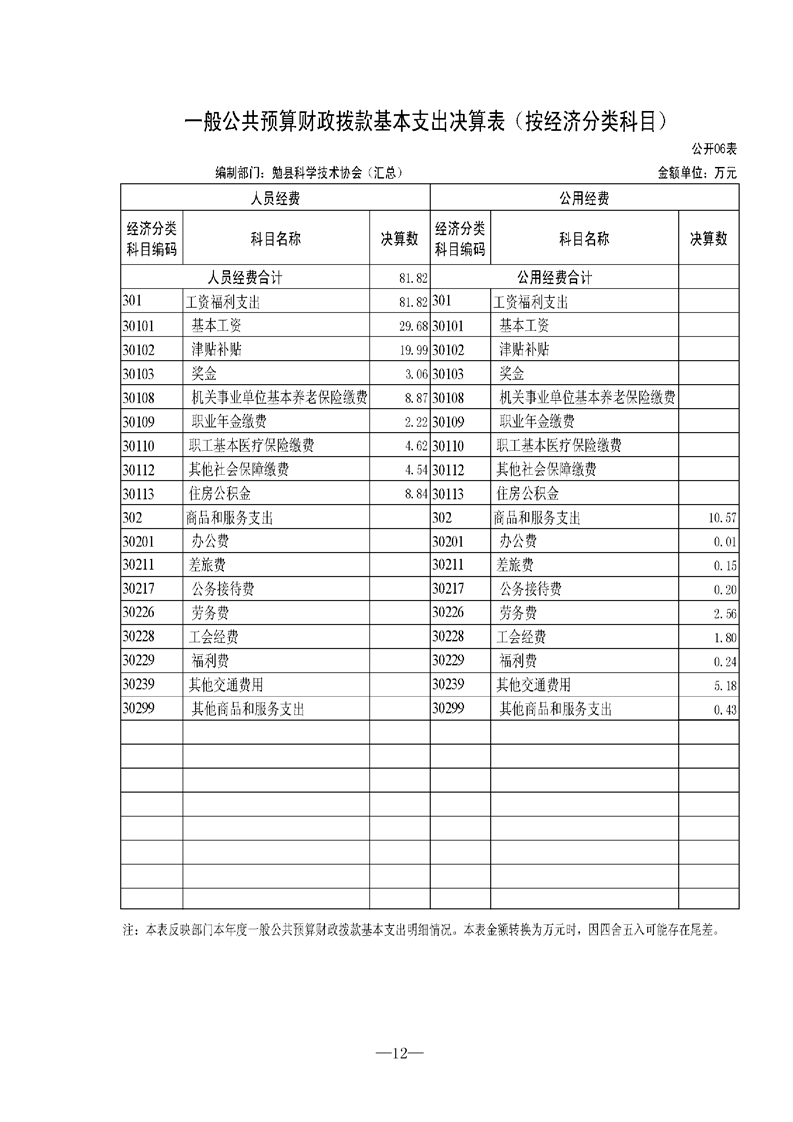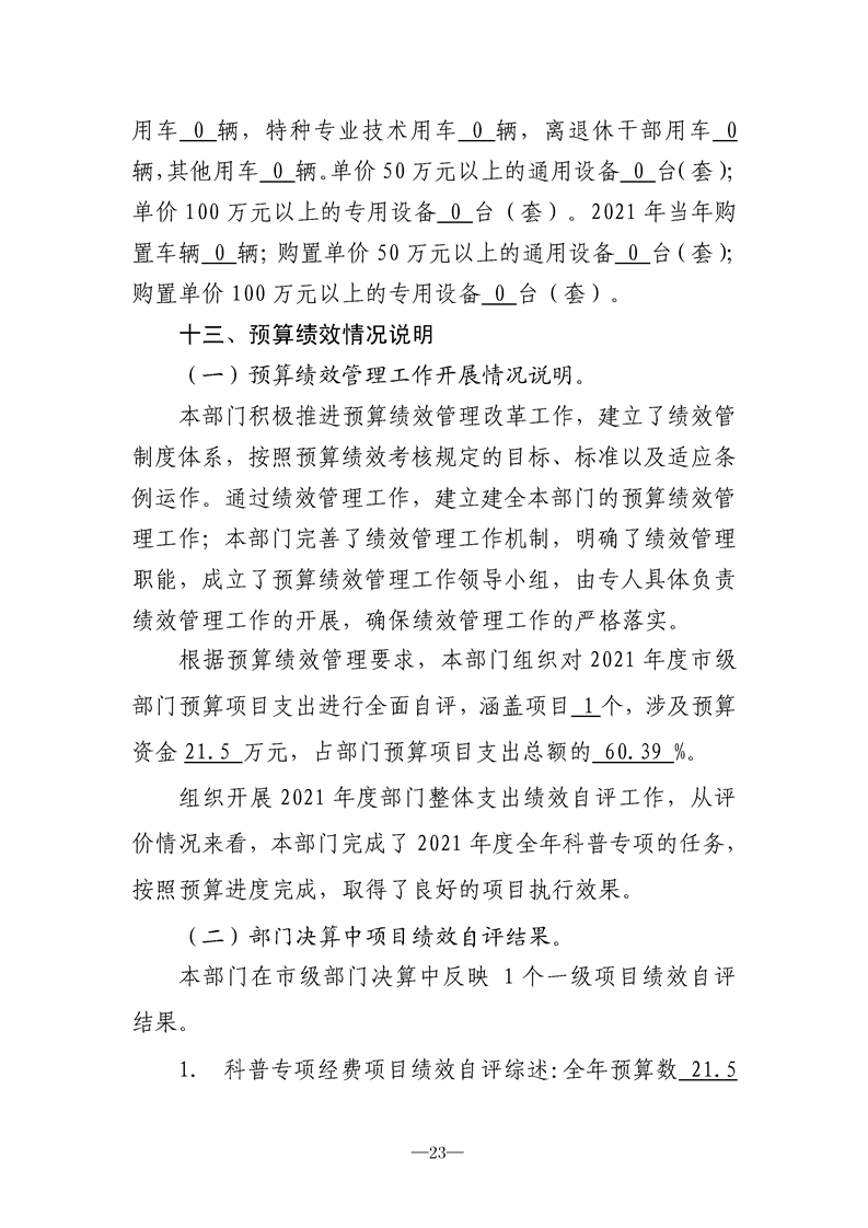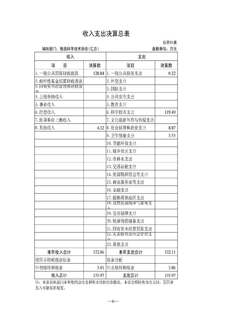 勉县科学技术协会2021年决算公开