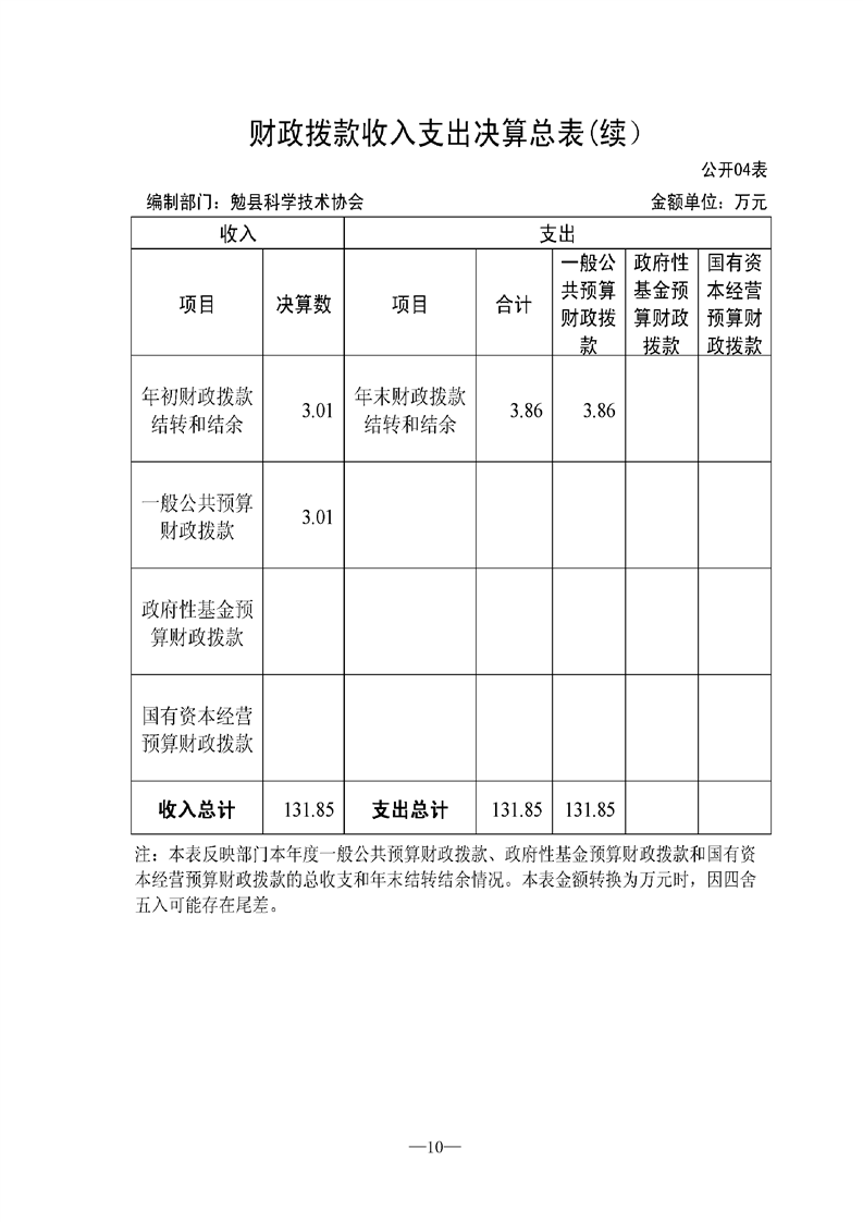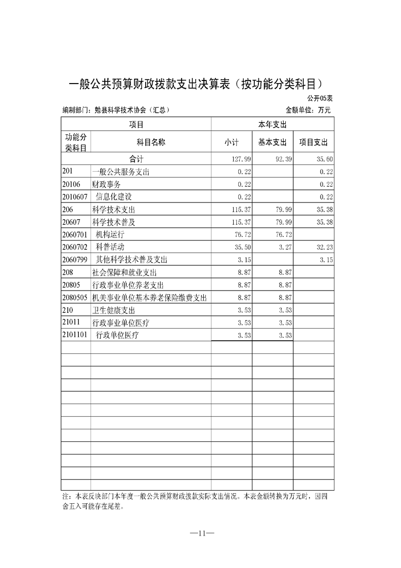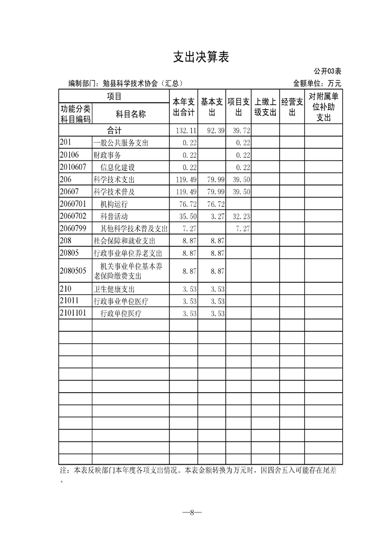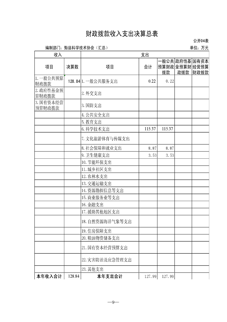 勉县科学技术协会2021年决算公开