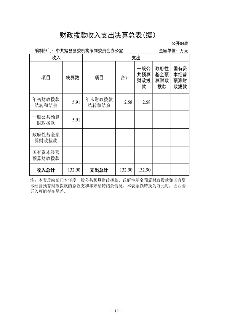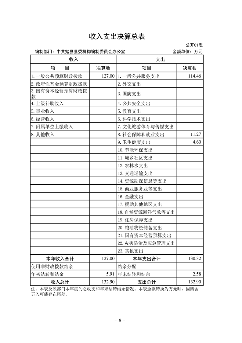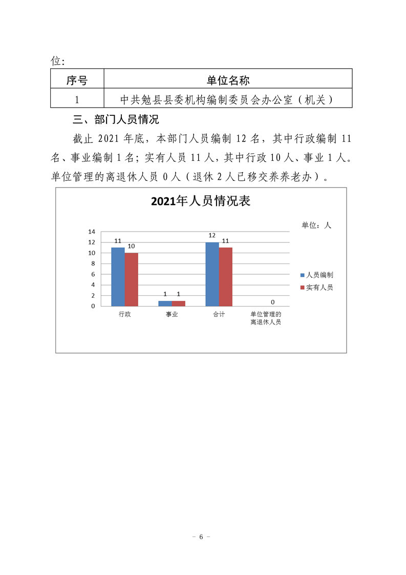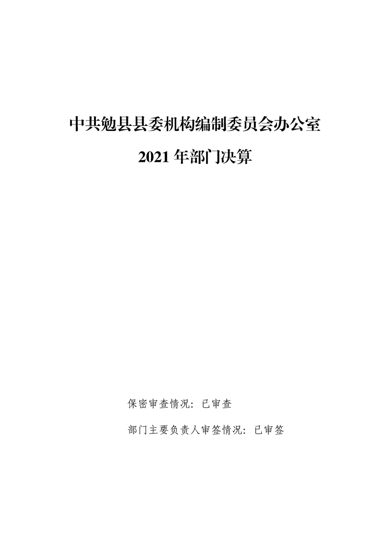 中共勉县县委机构编制委员会办公室2021年部门决算(汇总)