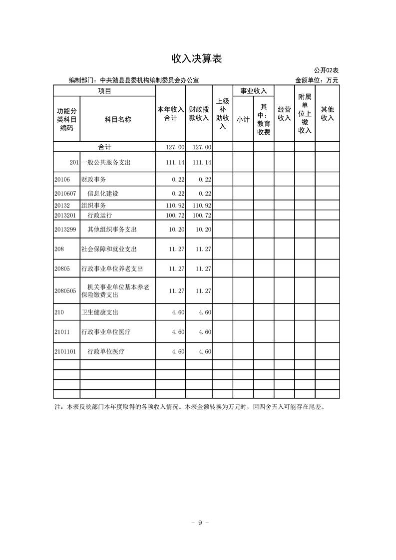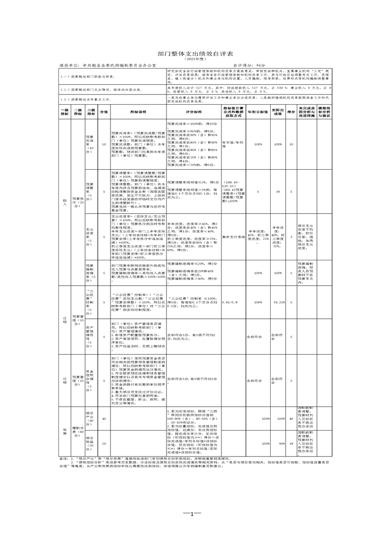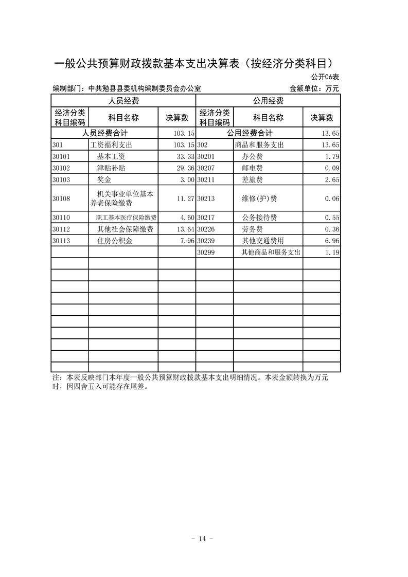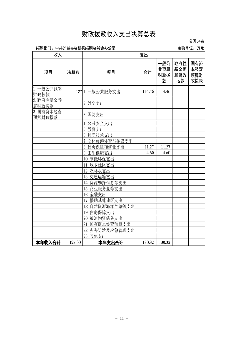 中共勉县县委机构编制委员会办公室2021年部门决算(汇总)