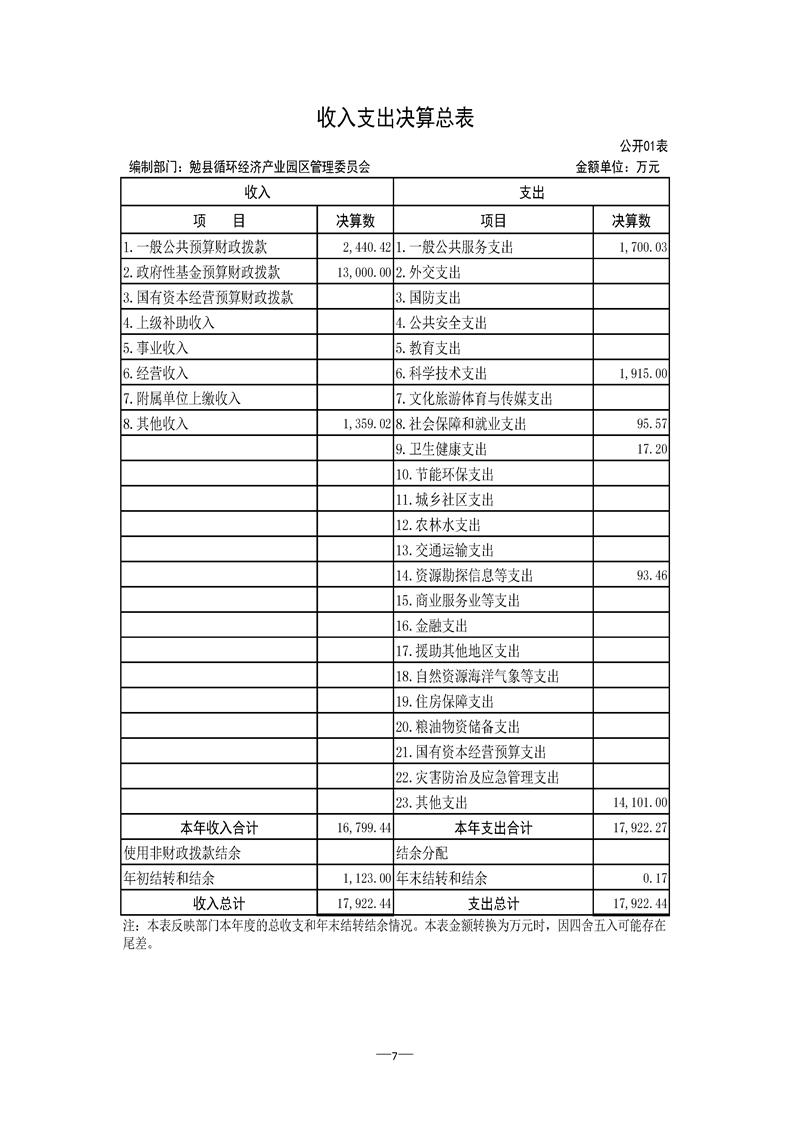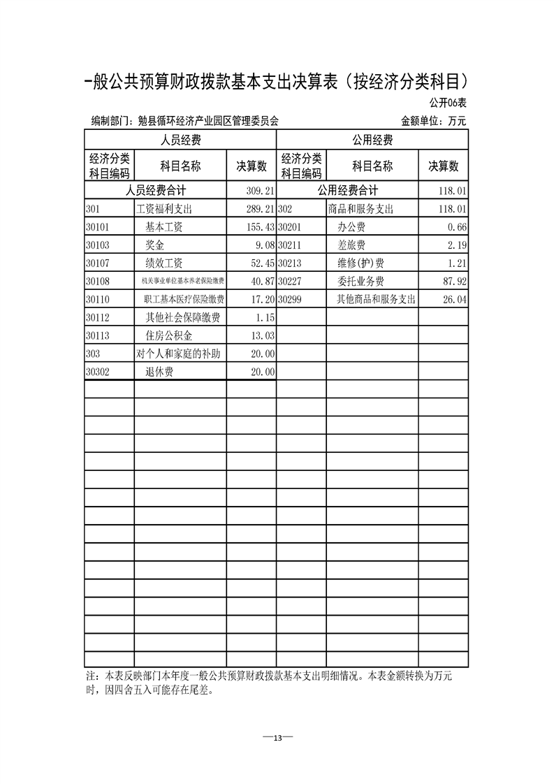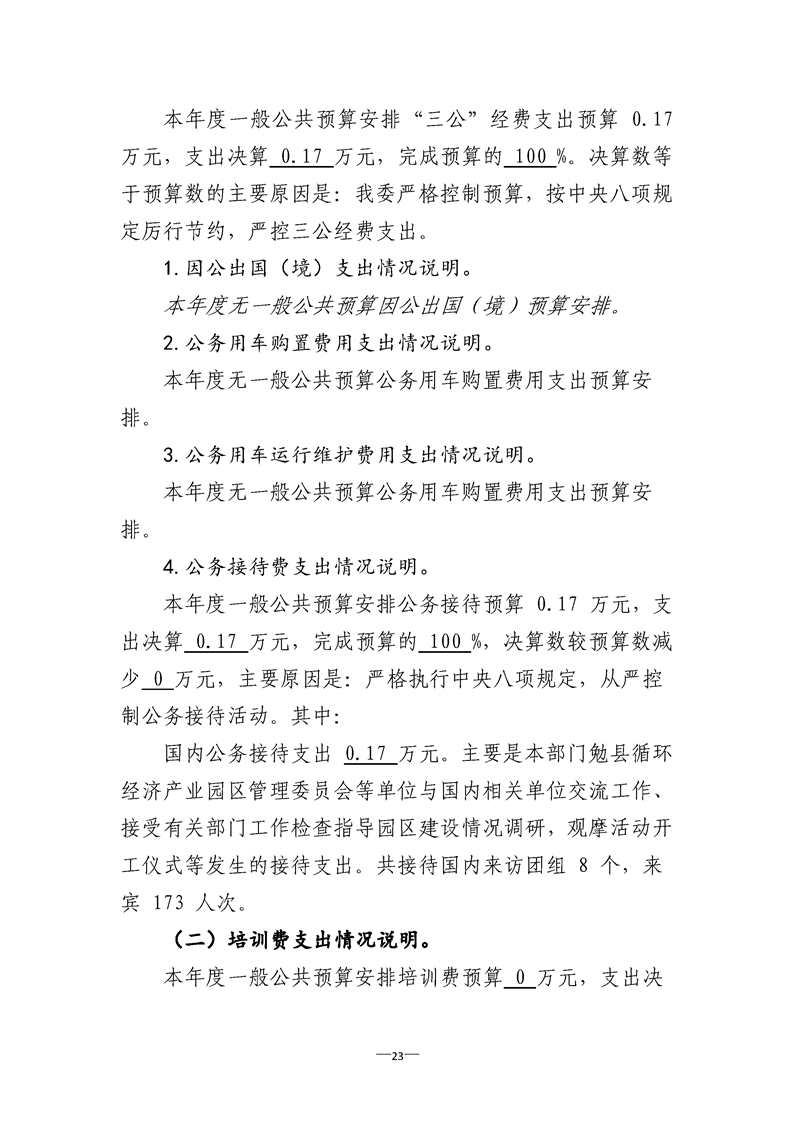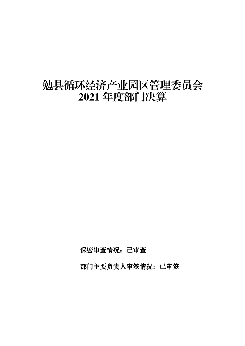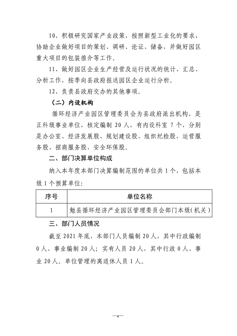 勉县循环经济产业园区管理委员会2021年度部门决算