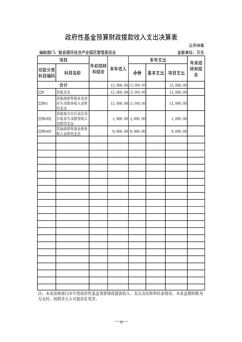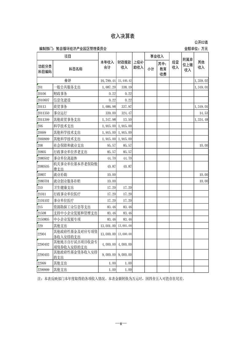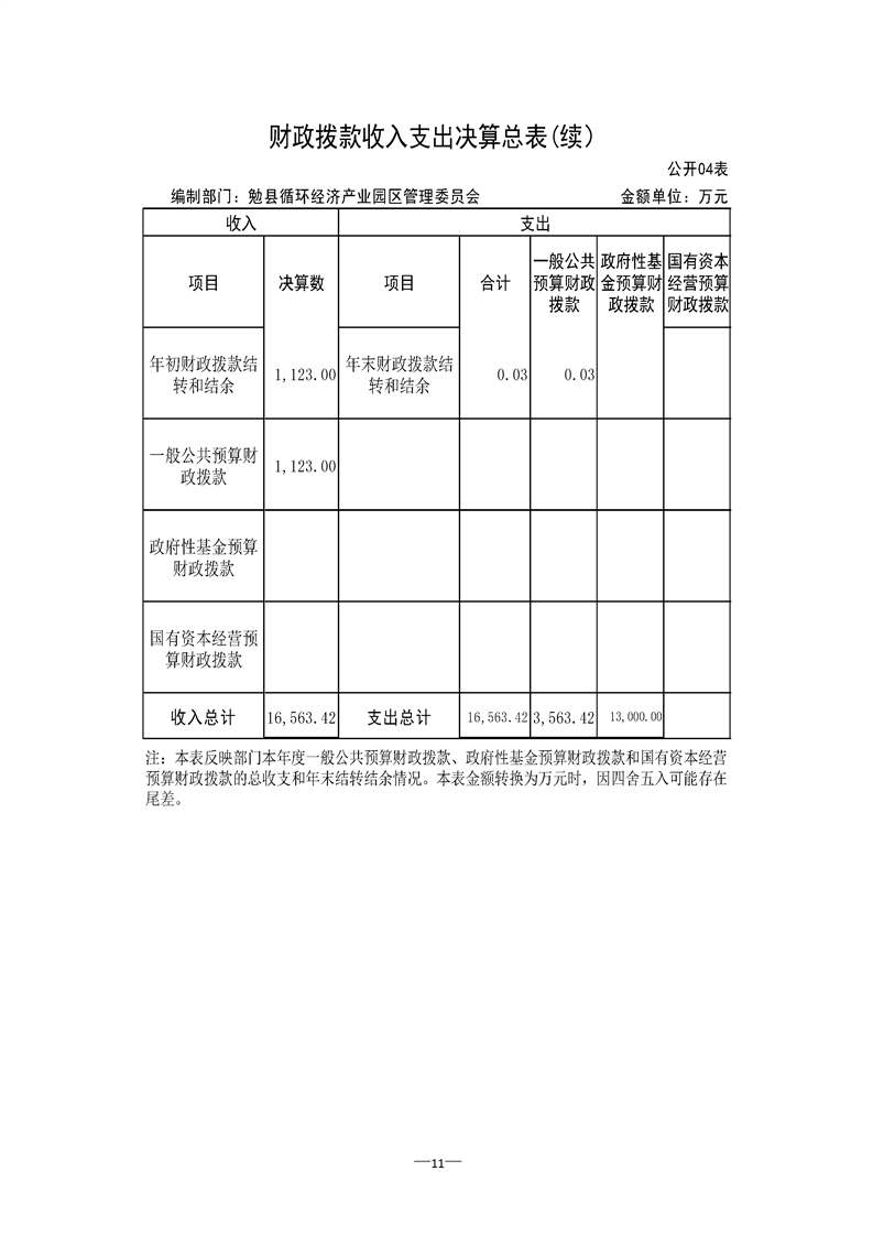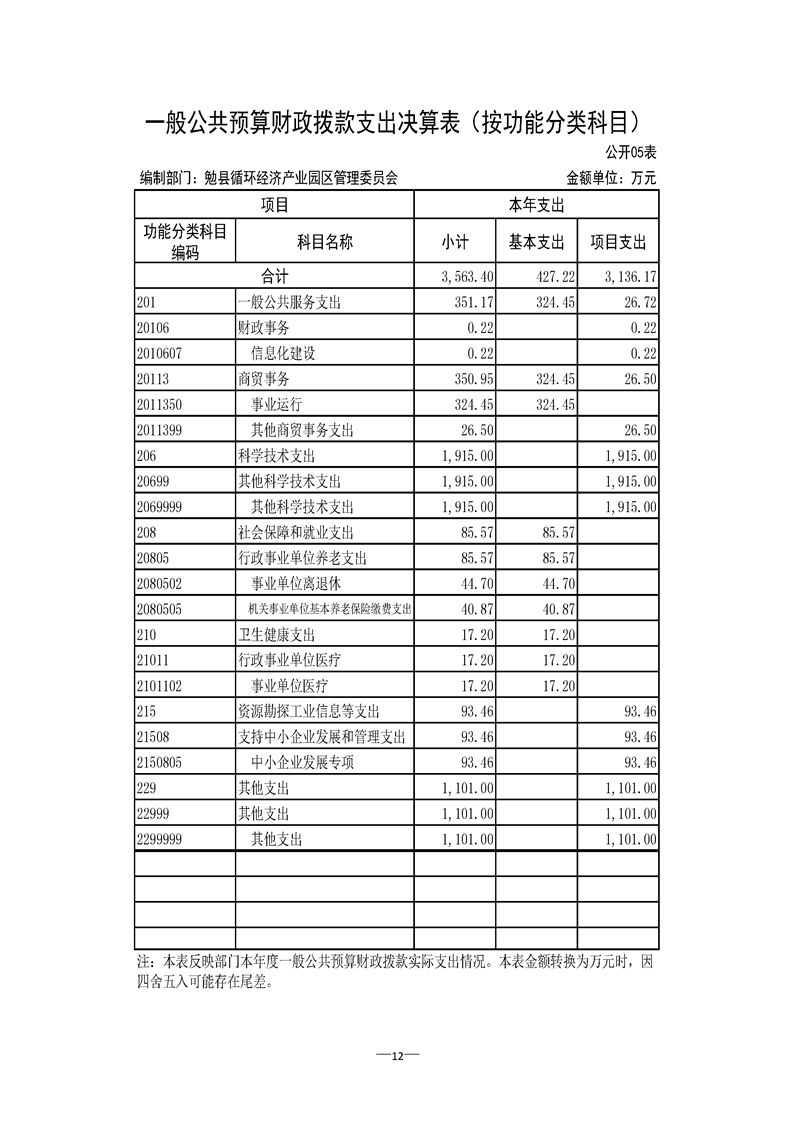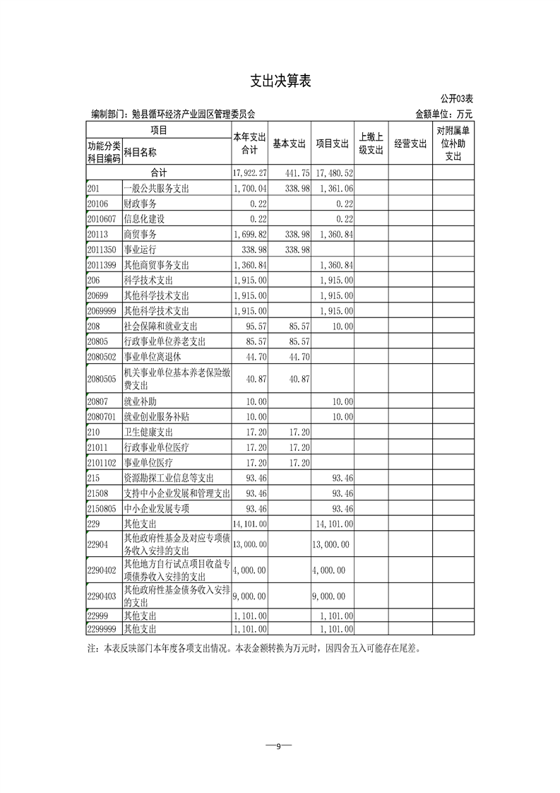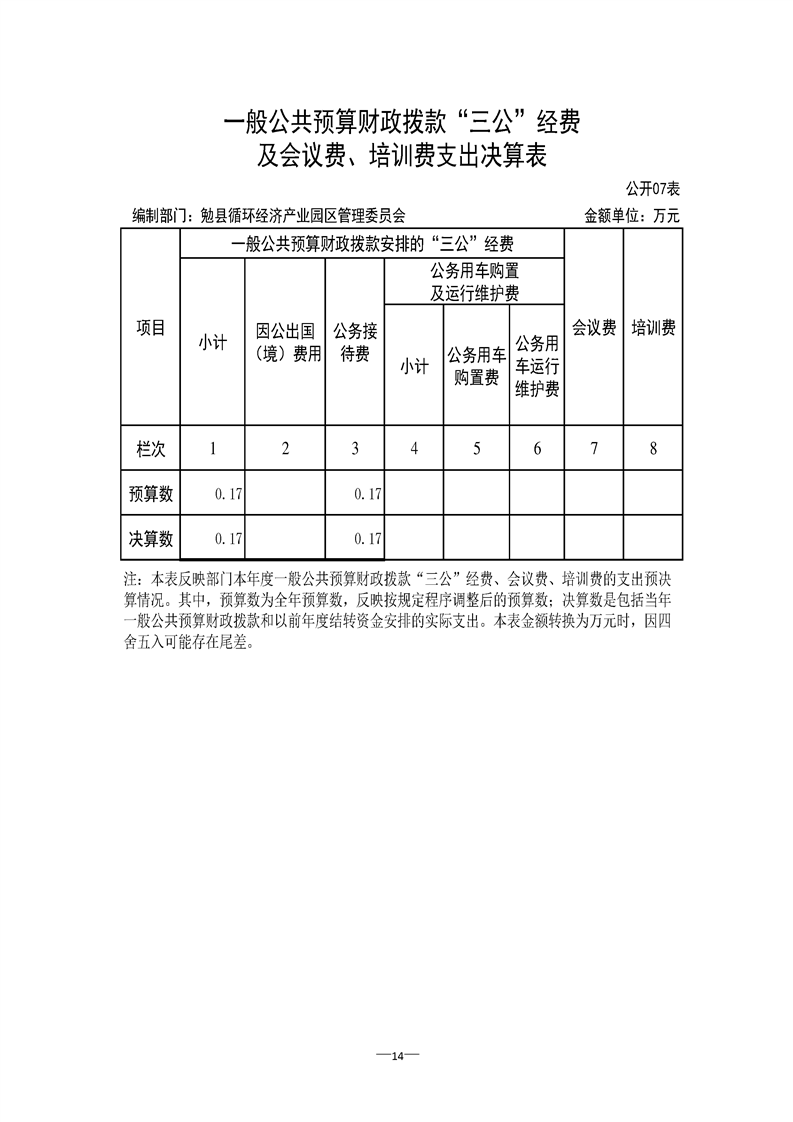 勉县循环经济产业园区管理委员会2021年度部门决算