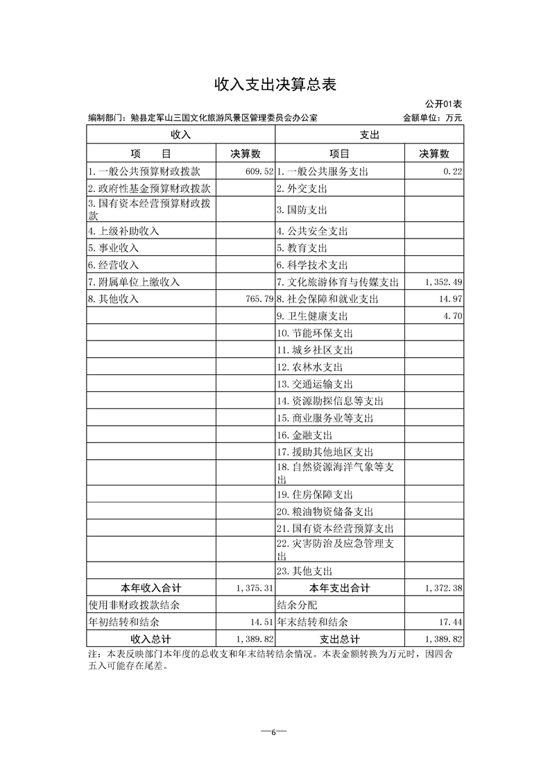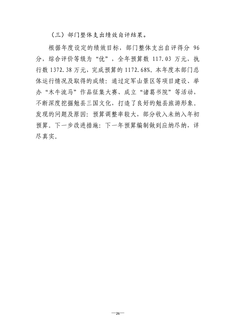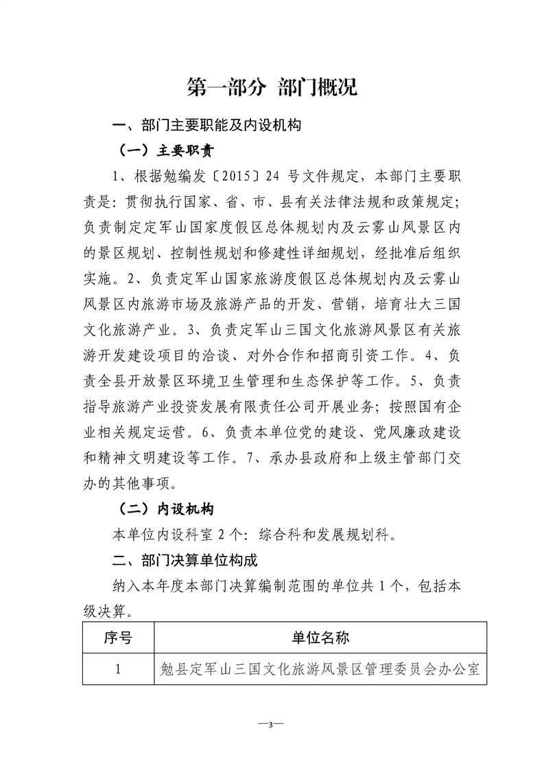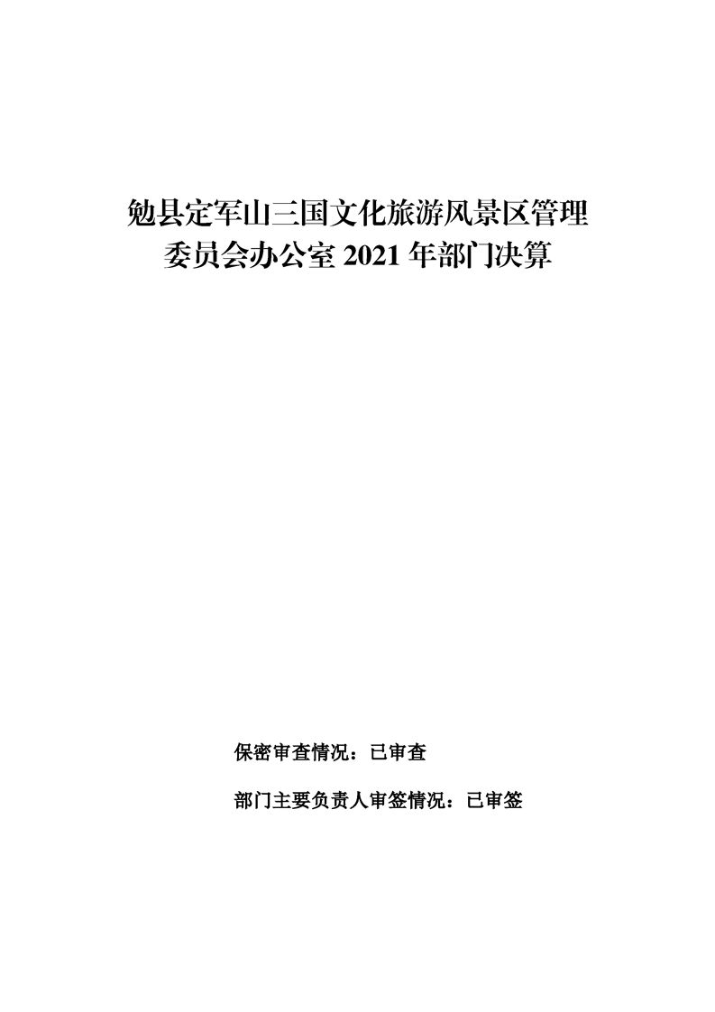 勉县定军山三国文化旅游风景区管理委员会办公室2021年部门决算