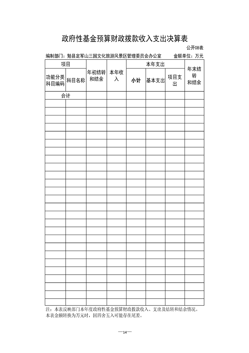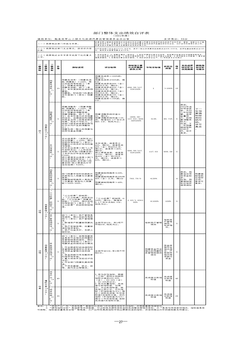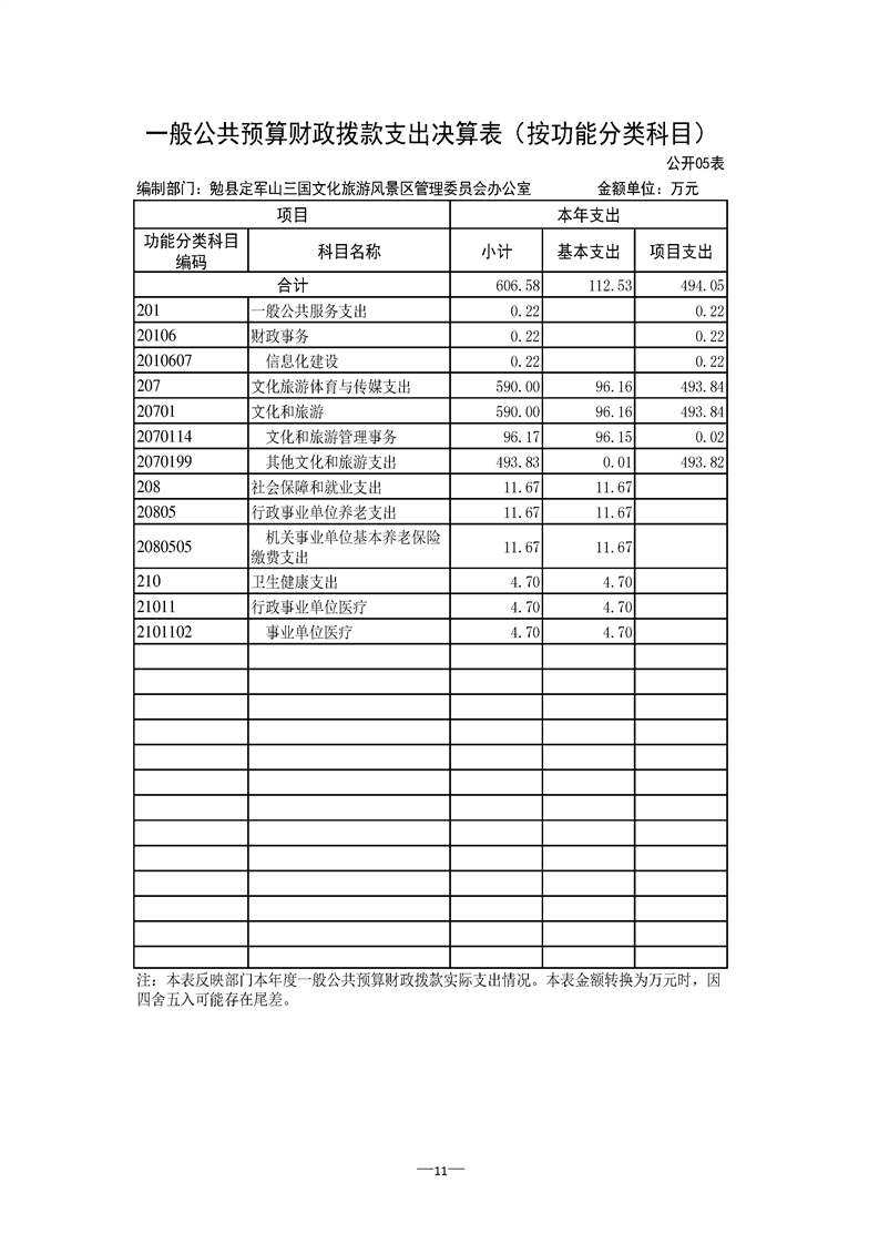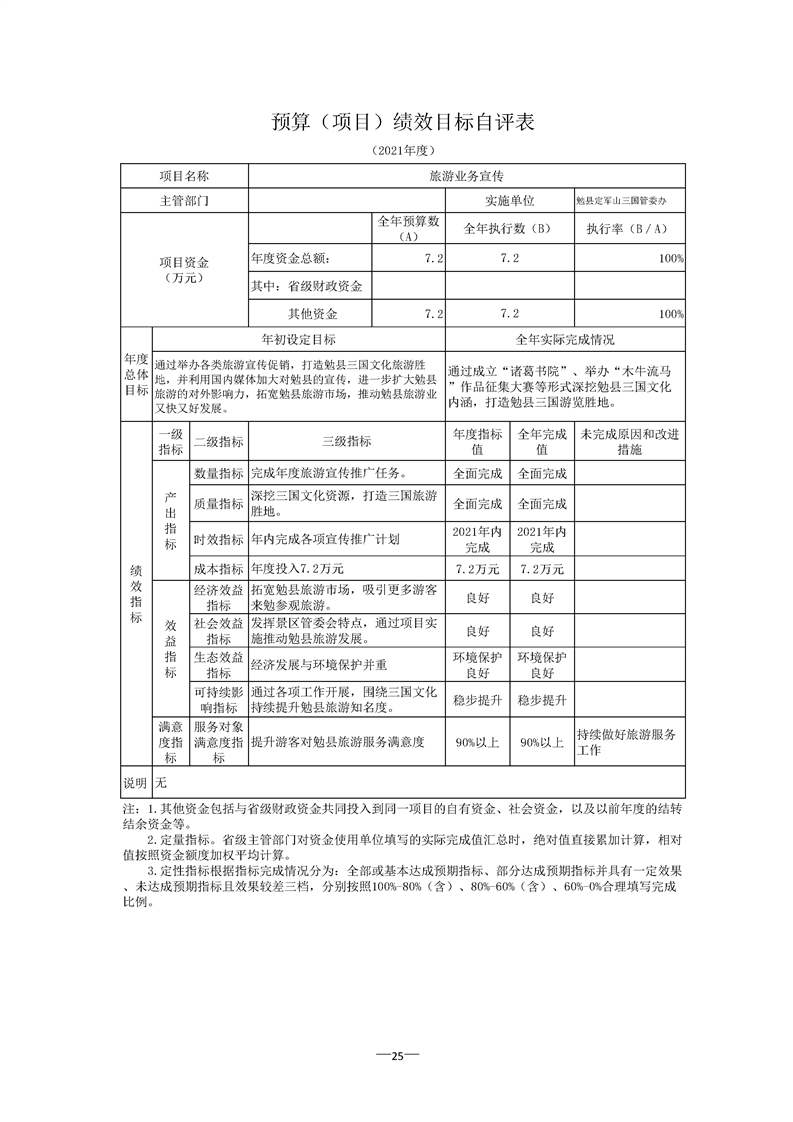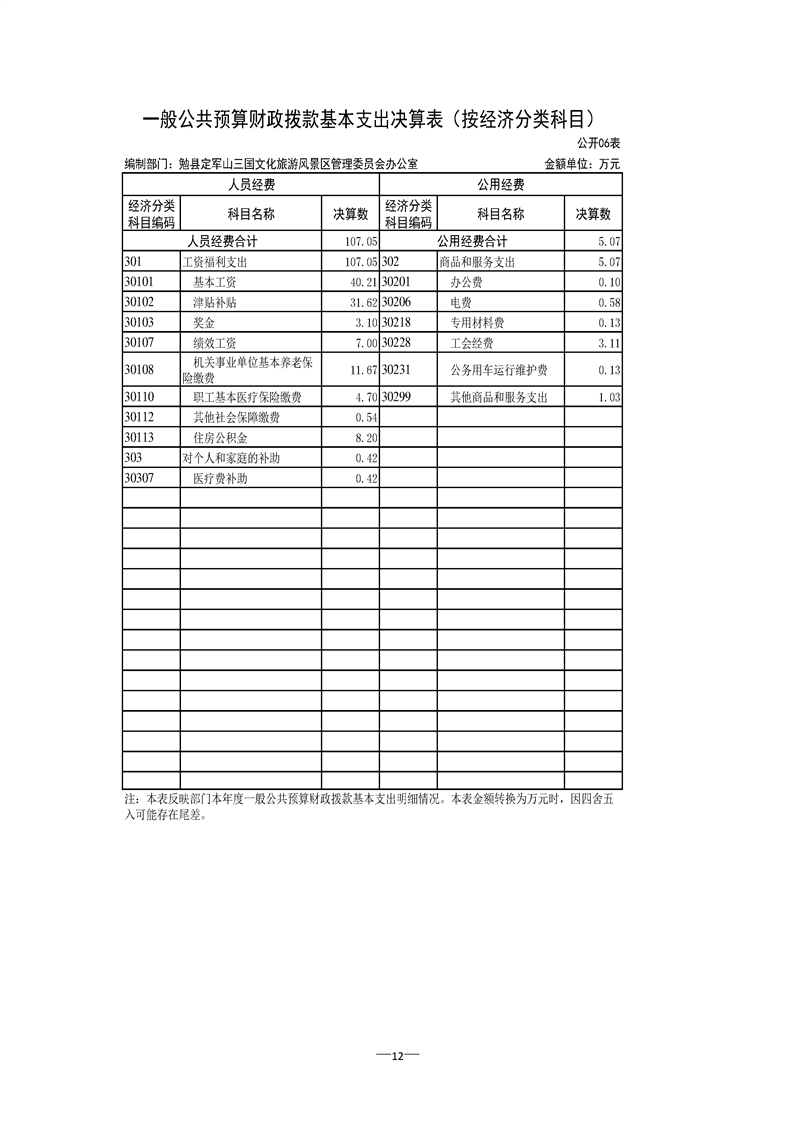 勉县定军山三国文化旅游风景区管理委员会办公室2021年部门决算