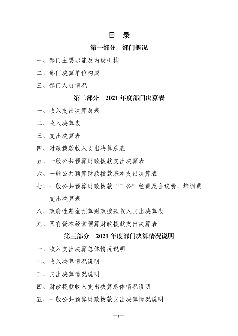 2021年县级部门决算公开目录