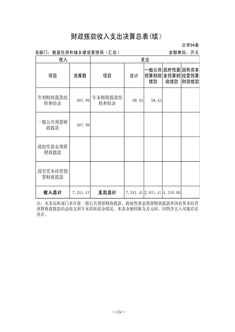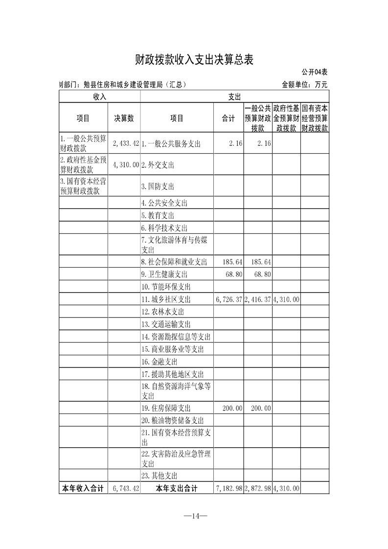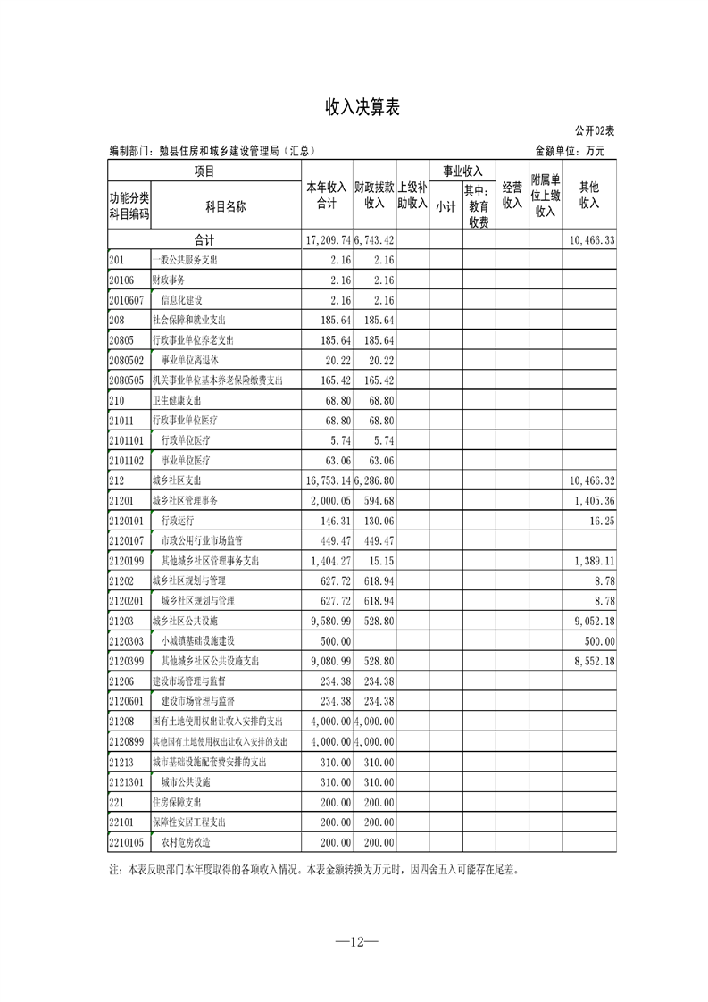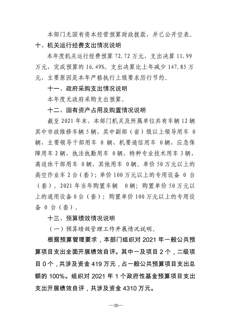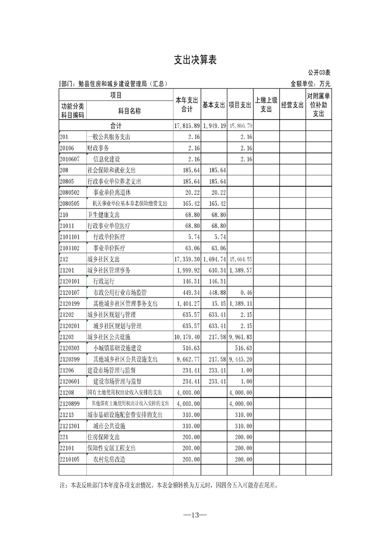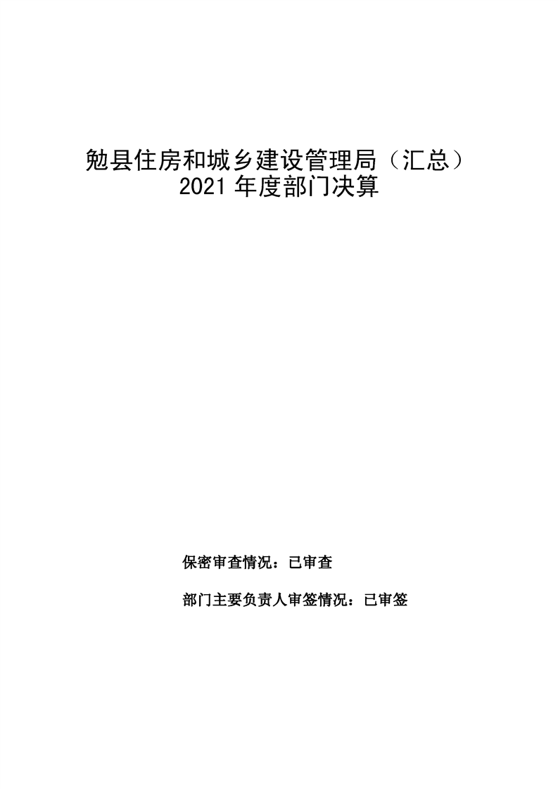 勉县住房和城乡建设管理局2021年度决算公开(汇总)