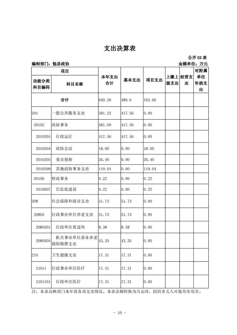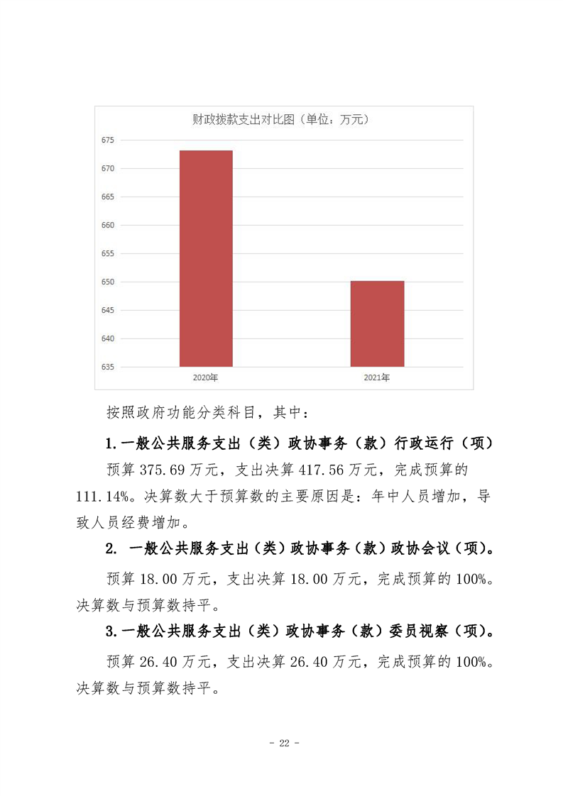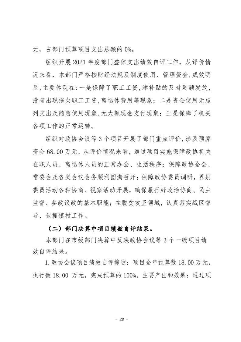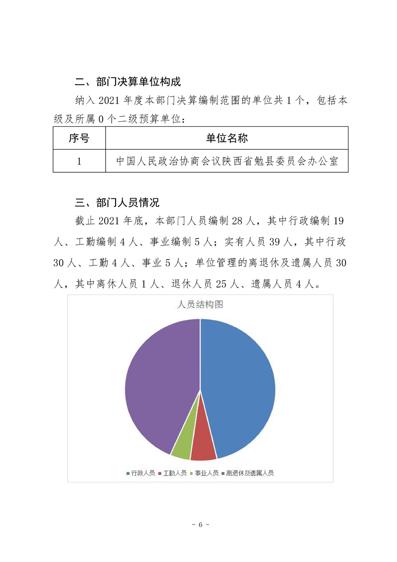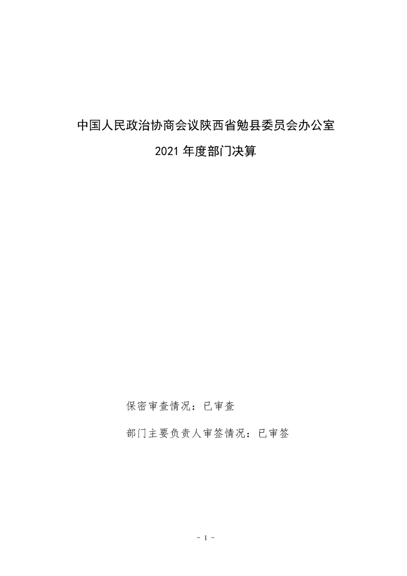 中国人民政治协商会议陕西省勉县委员会办公室2021年决算公开