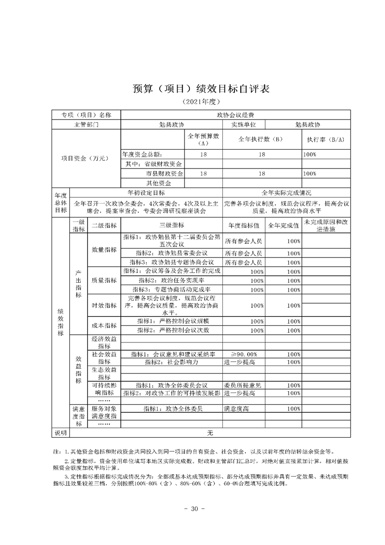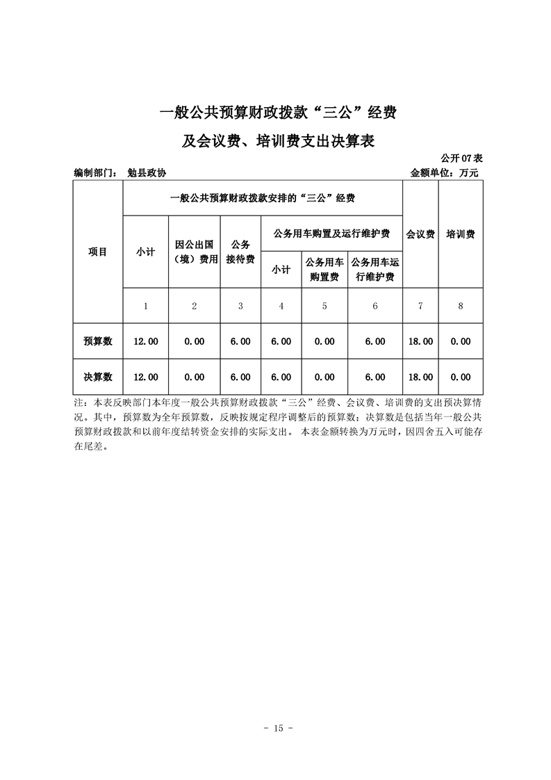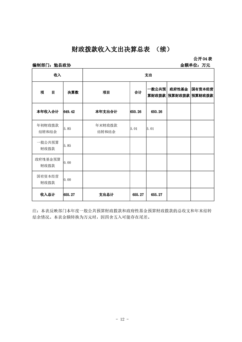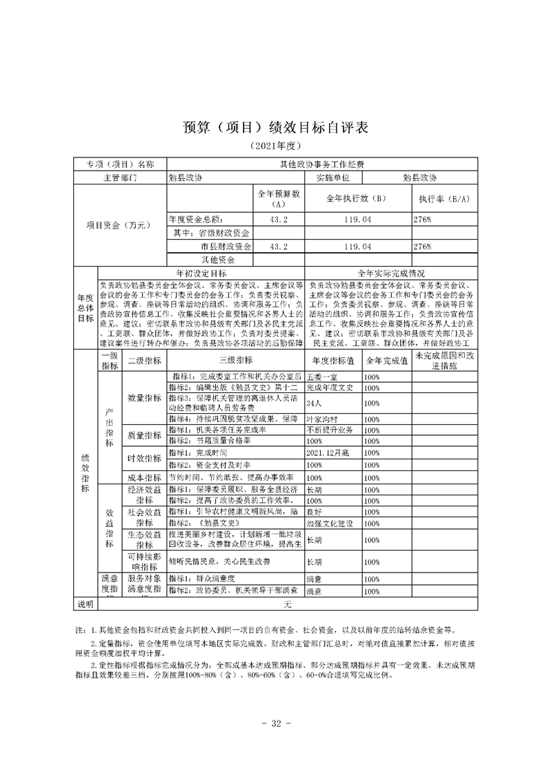 中国人民政治协商会议陕西省勉县委员会办公室2021年决算公开