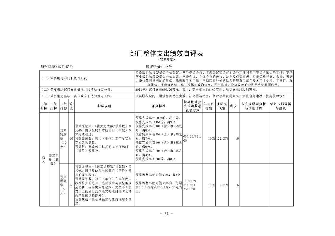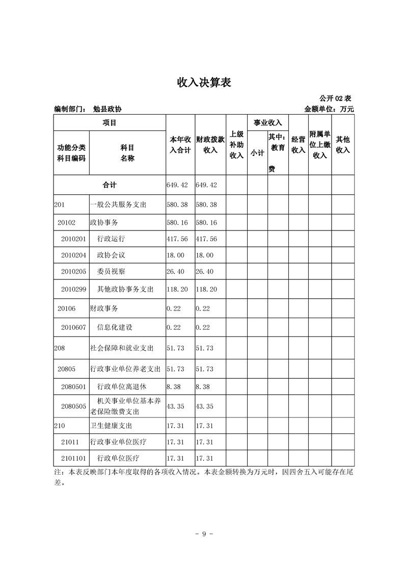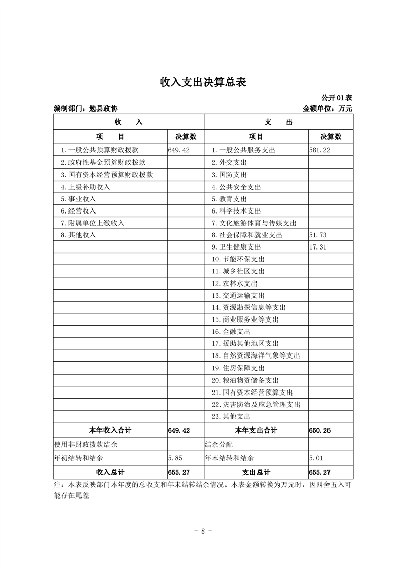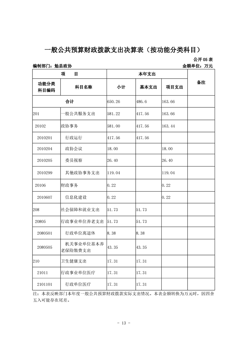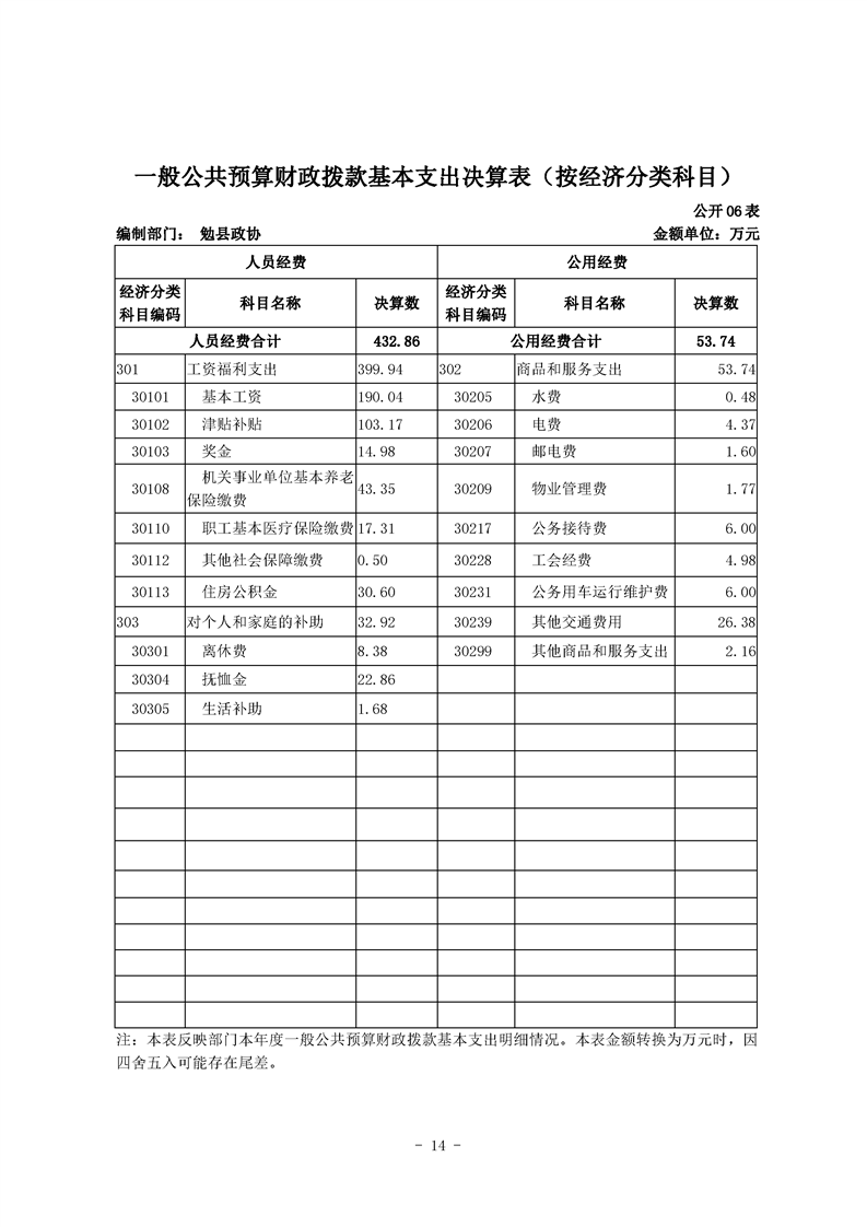 中国人民政治协商会议陕西省勉县委员会办公室2021年决算公开