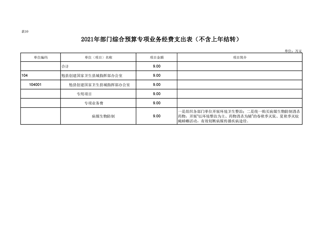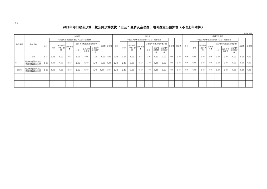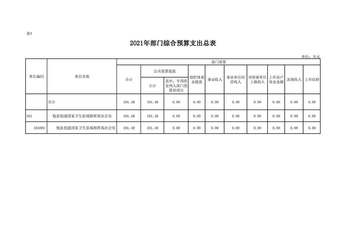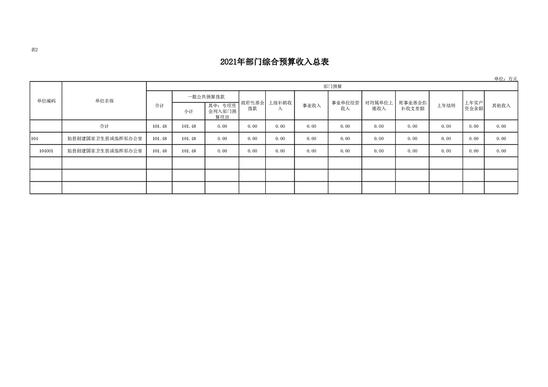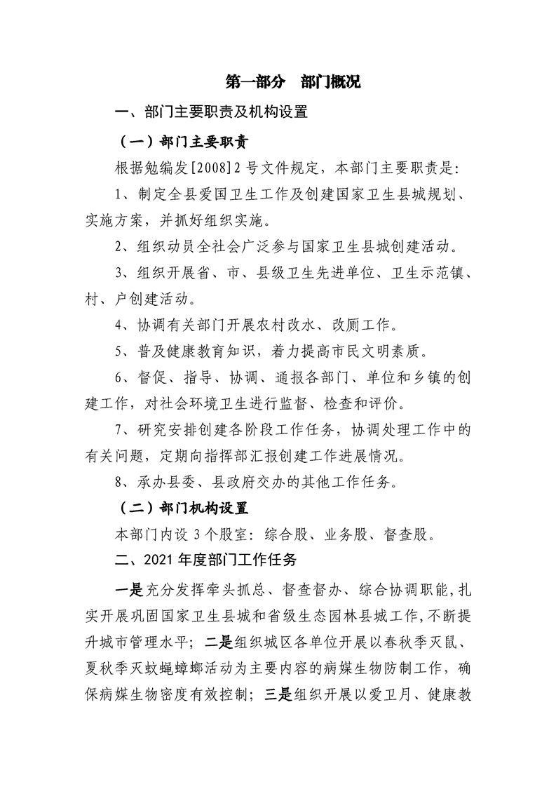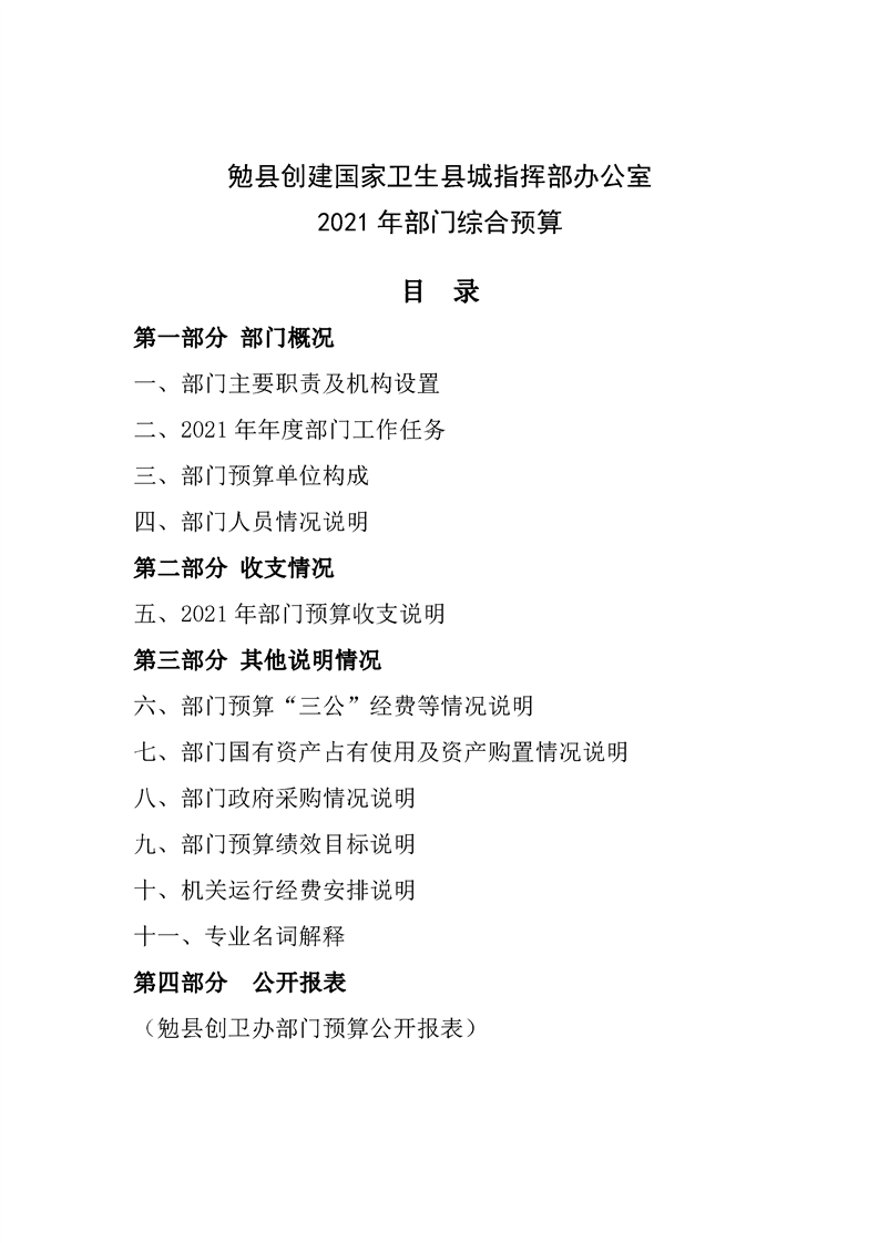 勉县创建国家卫生县城指挥部办公室2021年部门综合预算