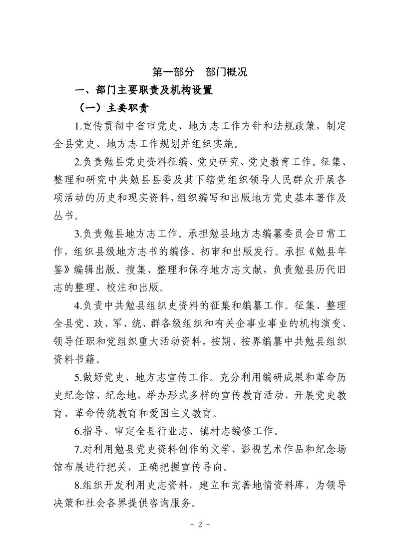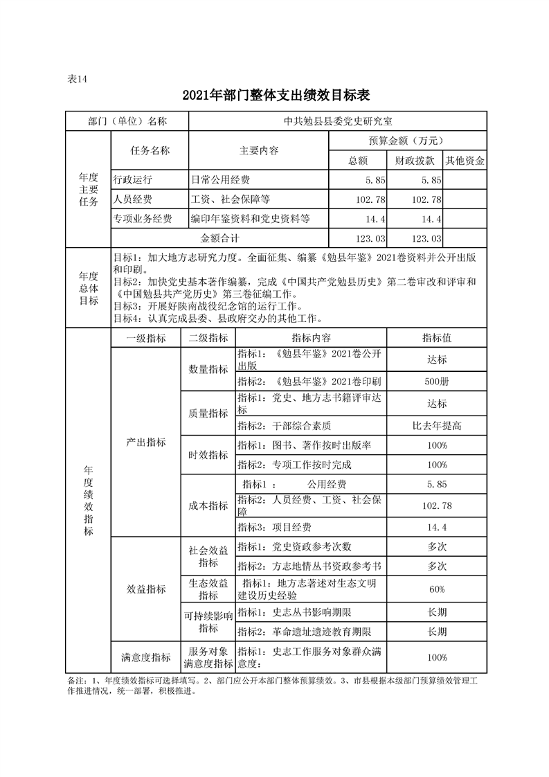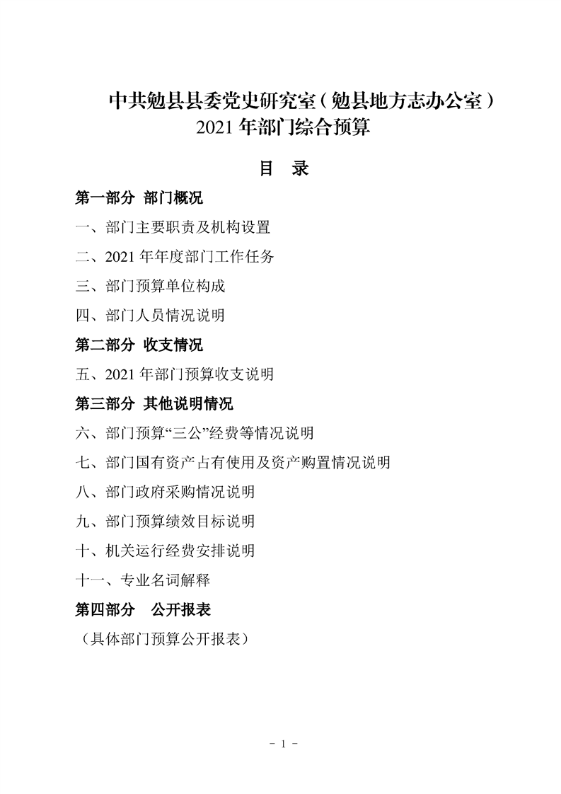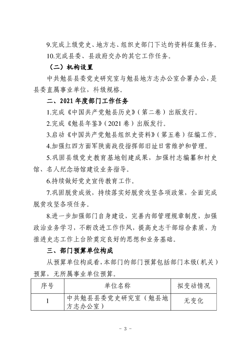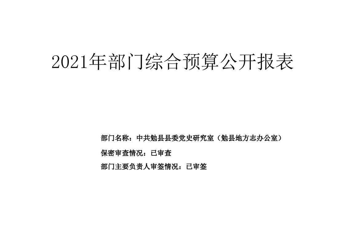 中共勉县县委党史研究室(勉县地方志办公室)2021年部门综合预算