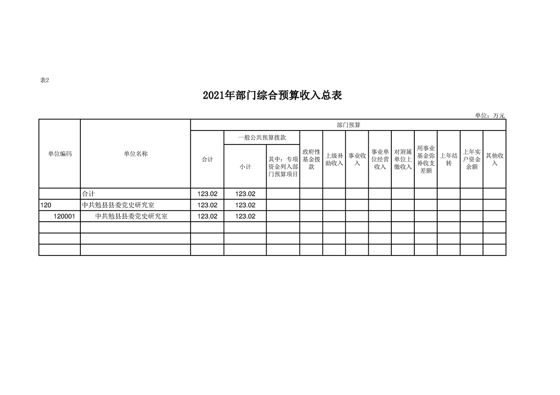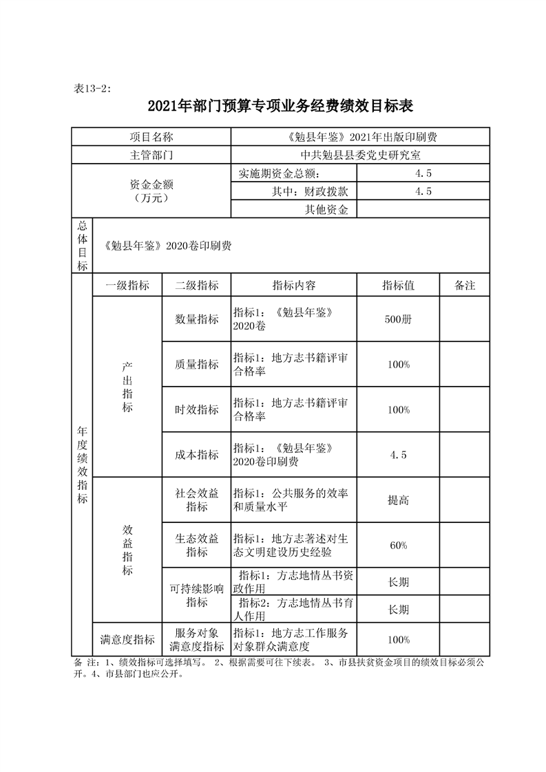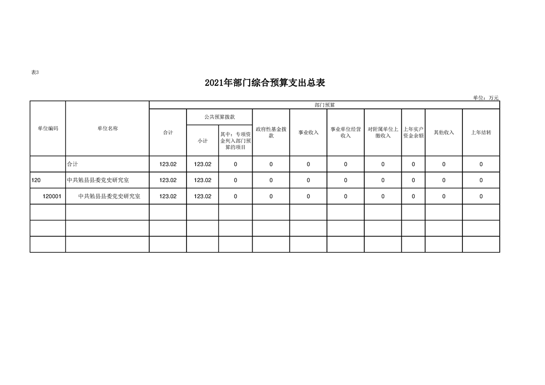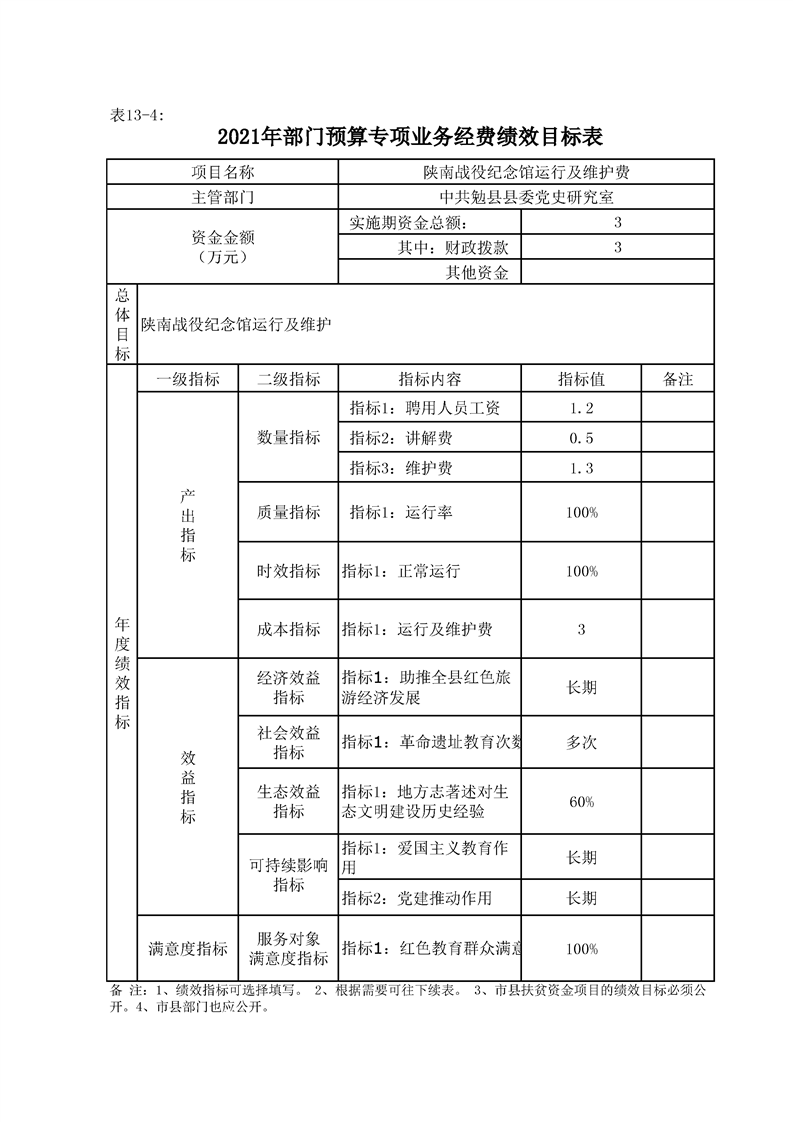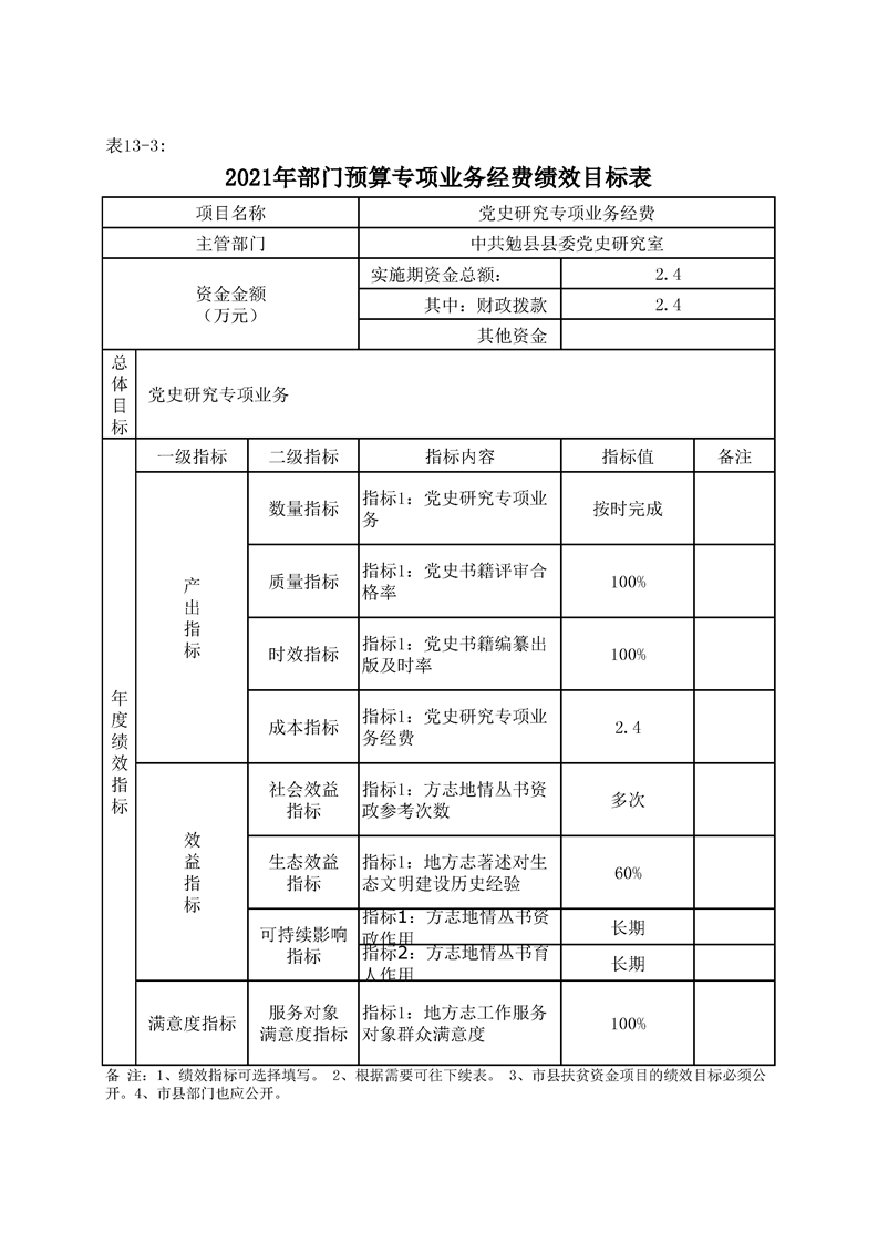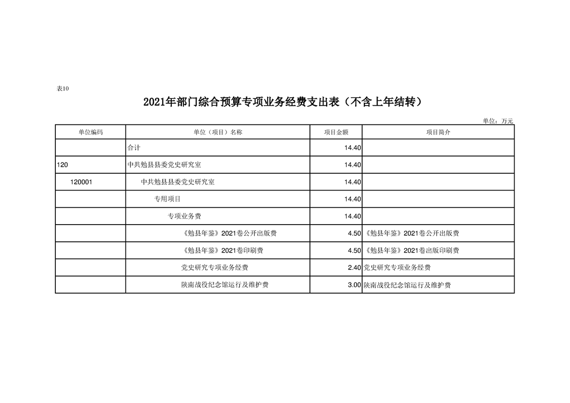 中共勉县县委党史研究室(勉县地方志办公室)2021年部门综合预算