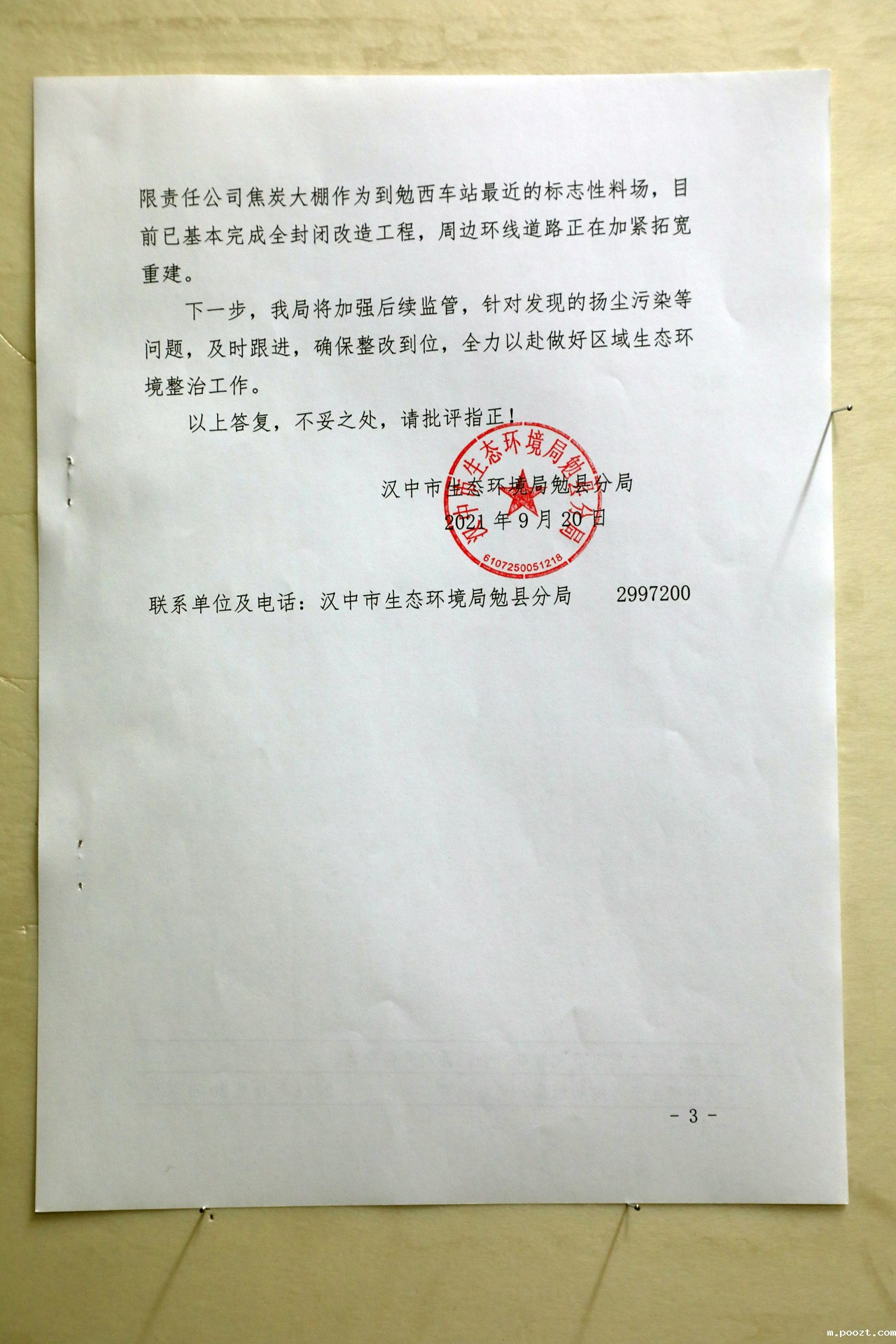 承办单位:市生态环境局勉县分局