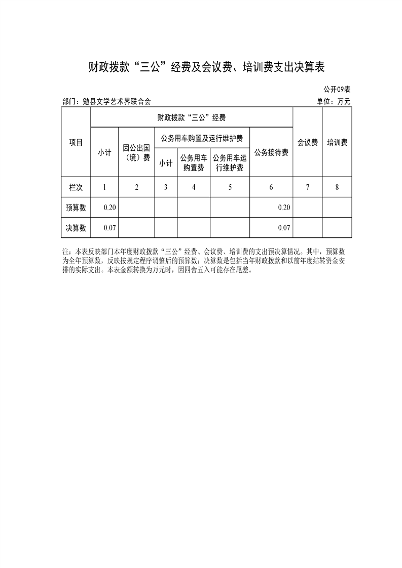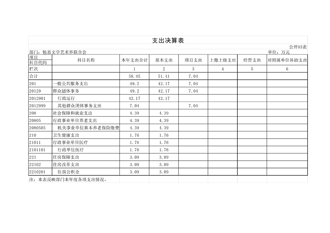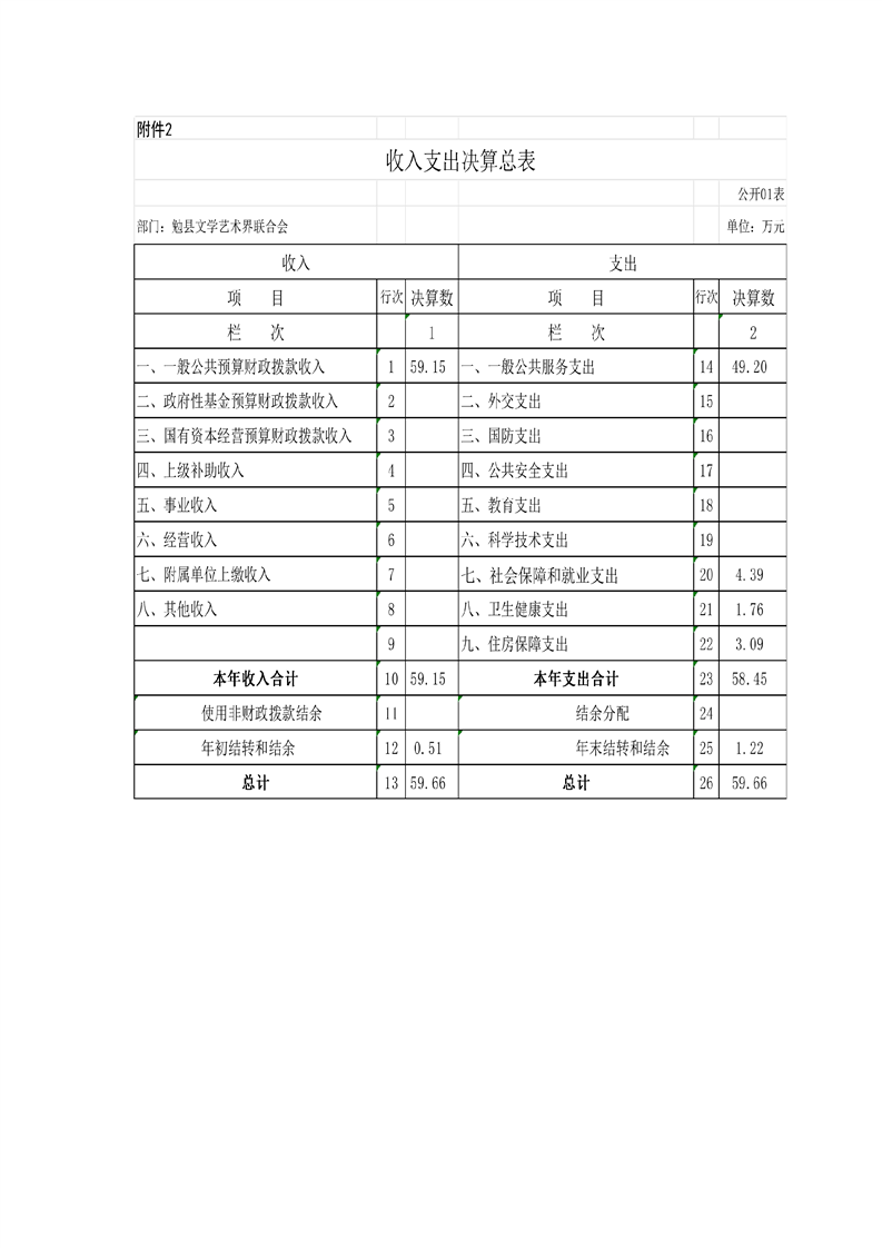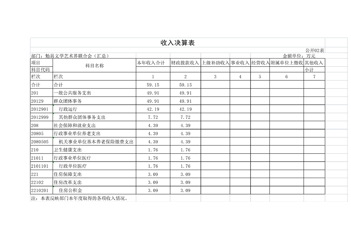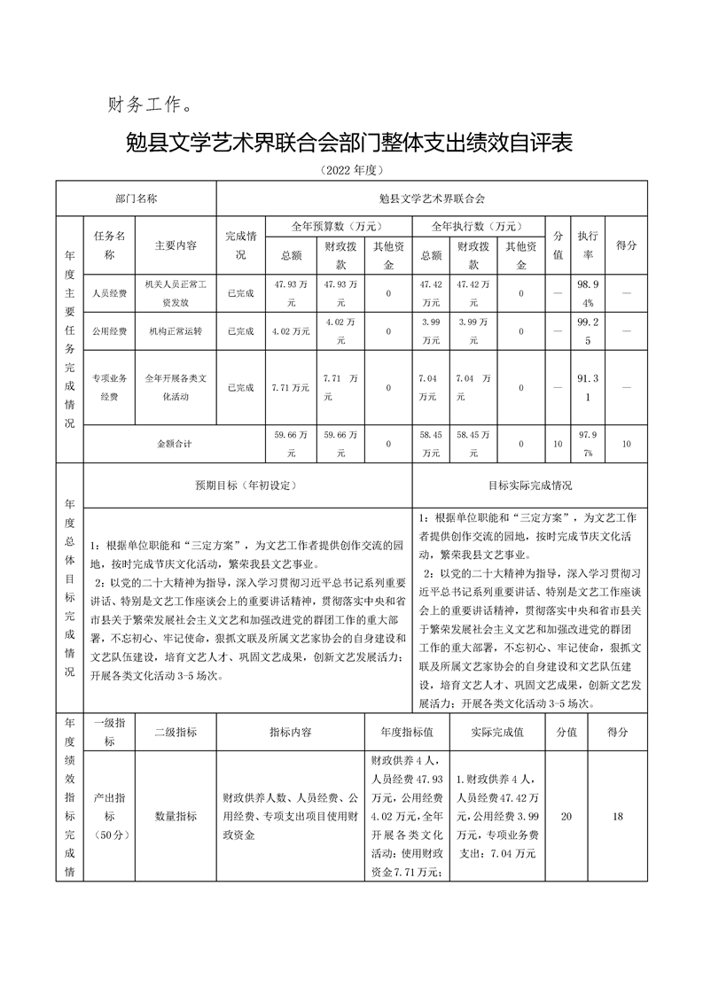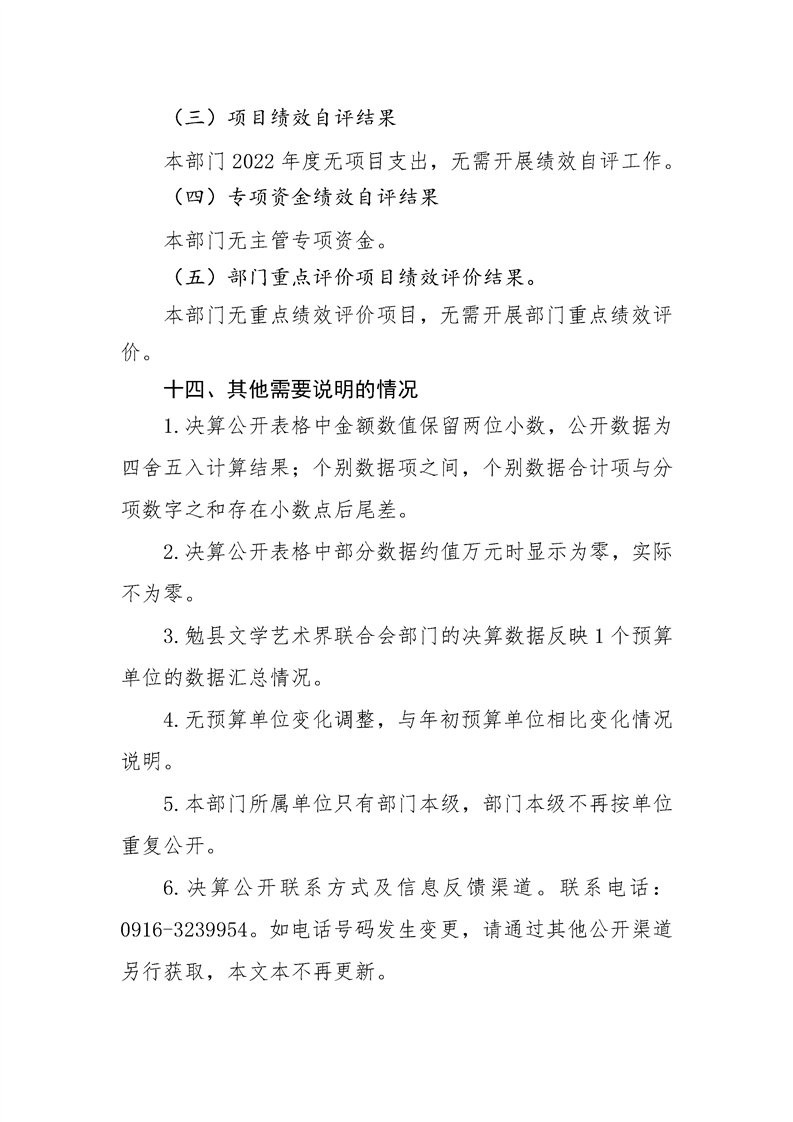 勉县文学界艺术联合会2022年度部门决算公开