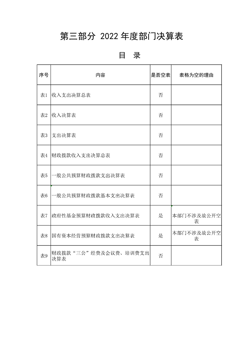 2022年县级部门决算公开目录