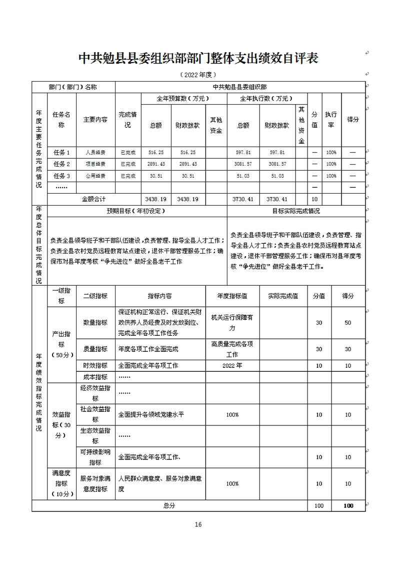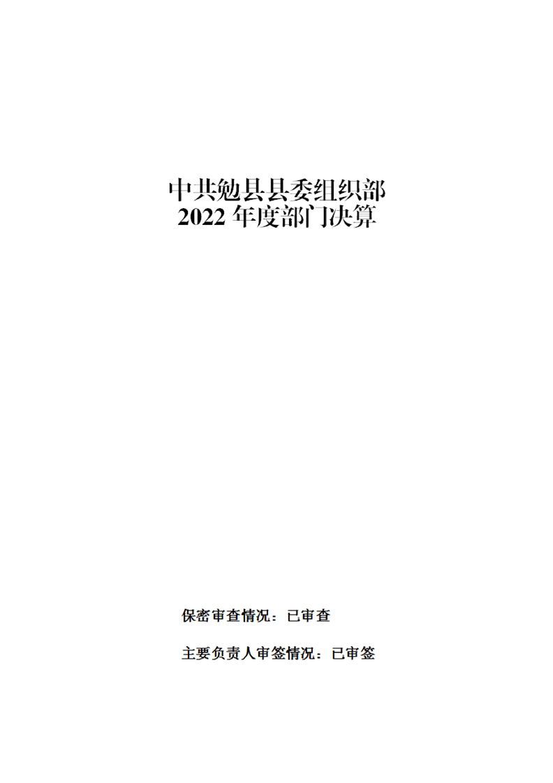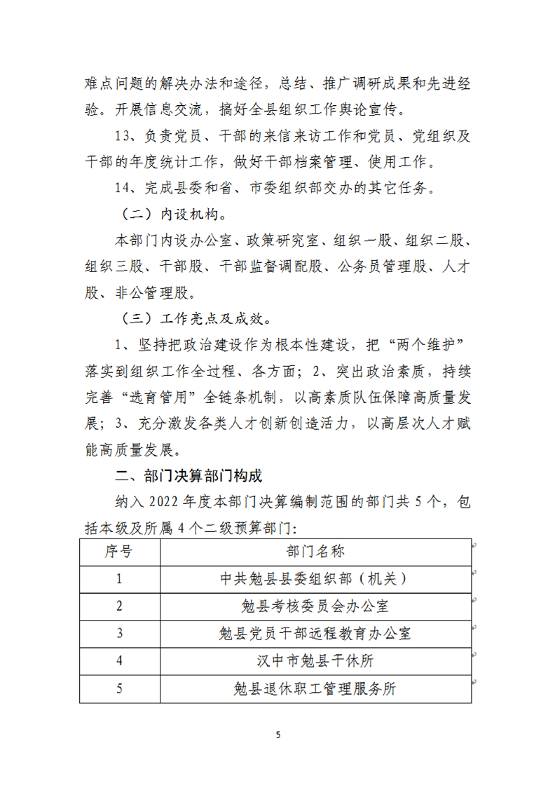 中共勉县县委组织部2022年度部门决算公开