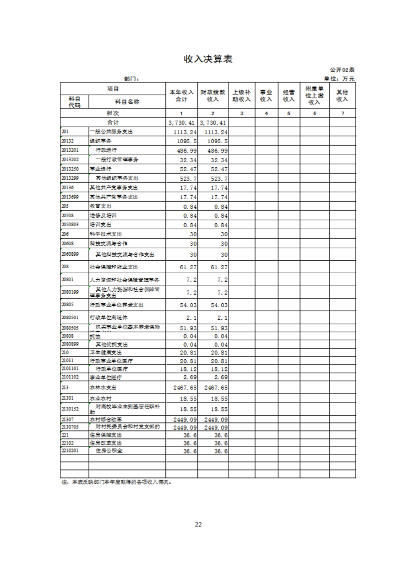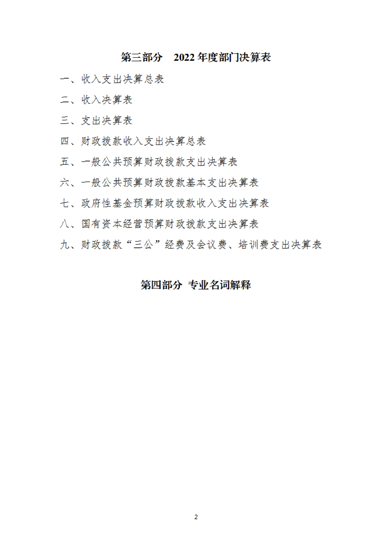 2022年县级部门决算公开目录