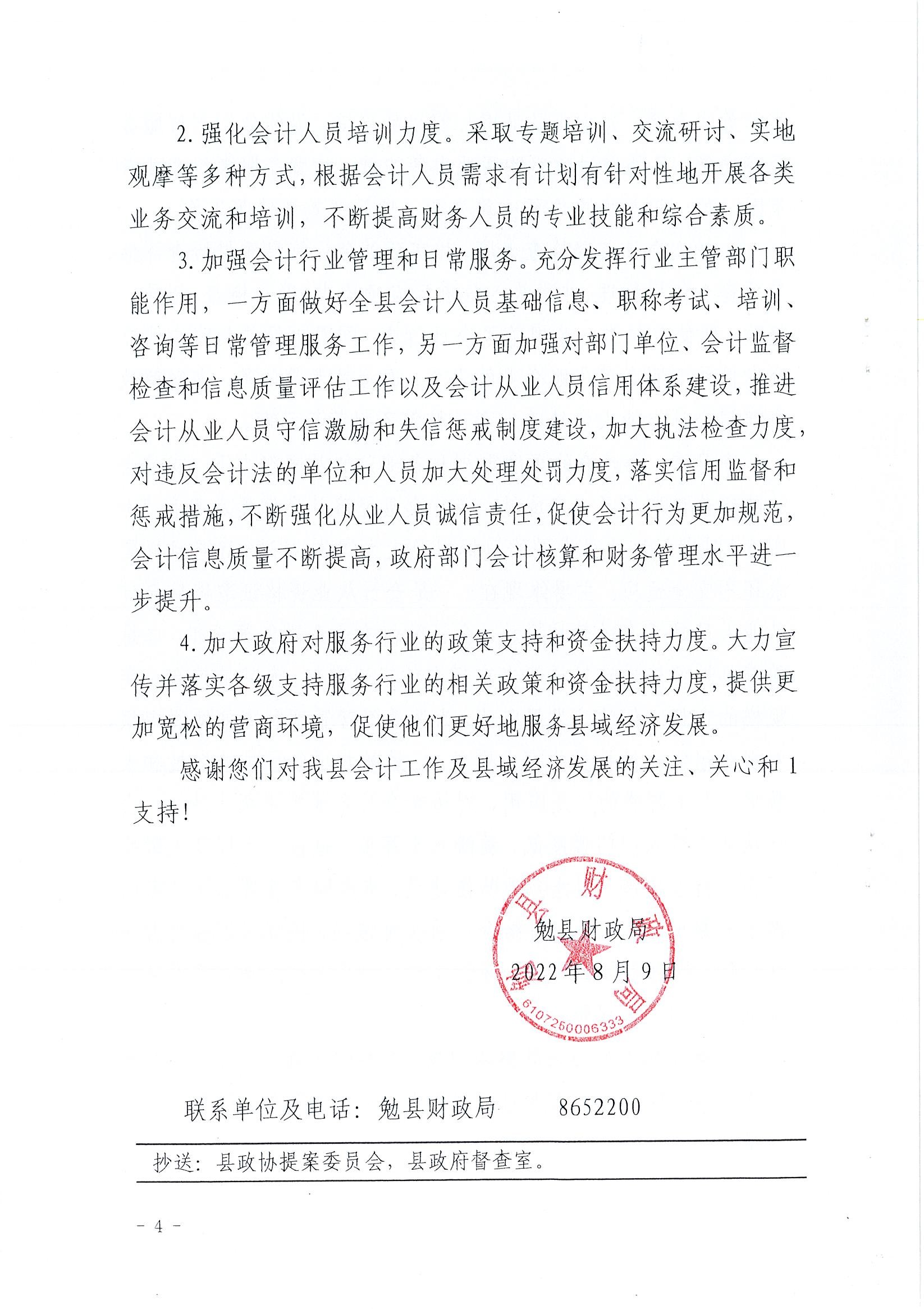 关于提高全县行政事业单位和国属企业会计核算水平,强化县城代理记账服务企业规范管理的提案