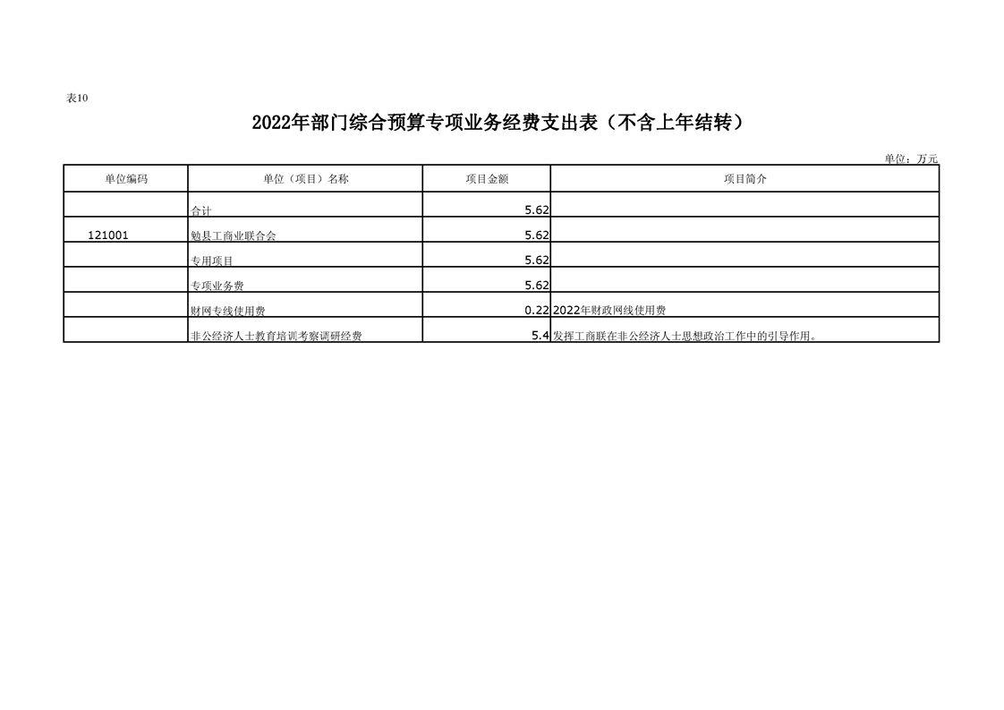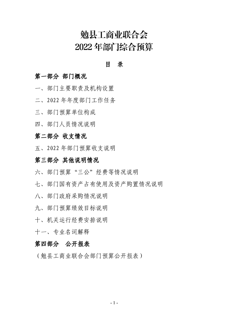 勉县工商联2022年部门综合预算公开