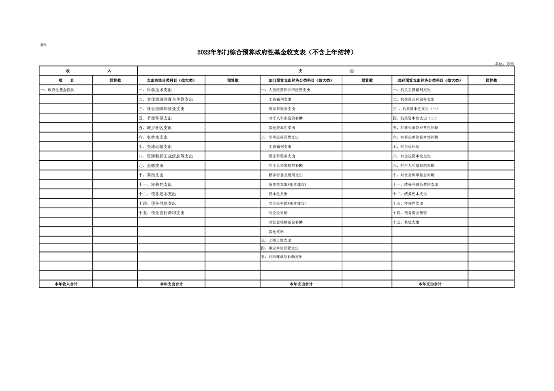 2022年县级部门预算公开目录