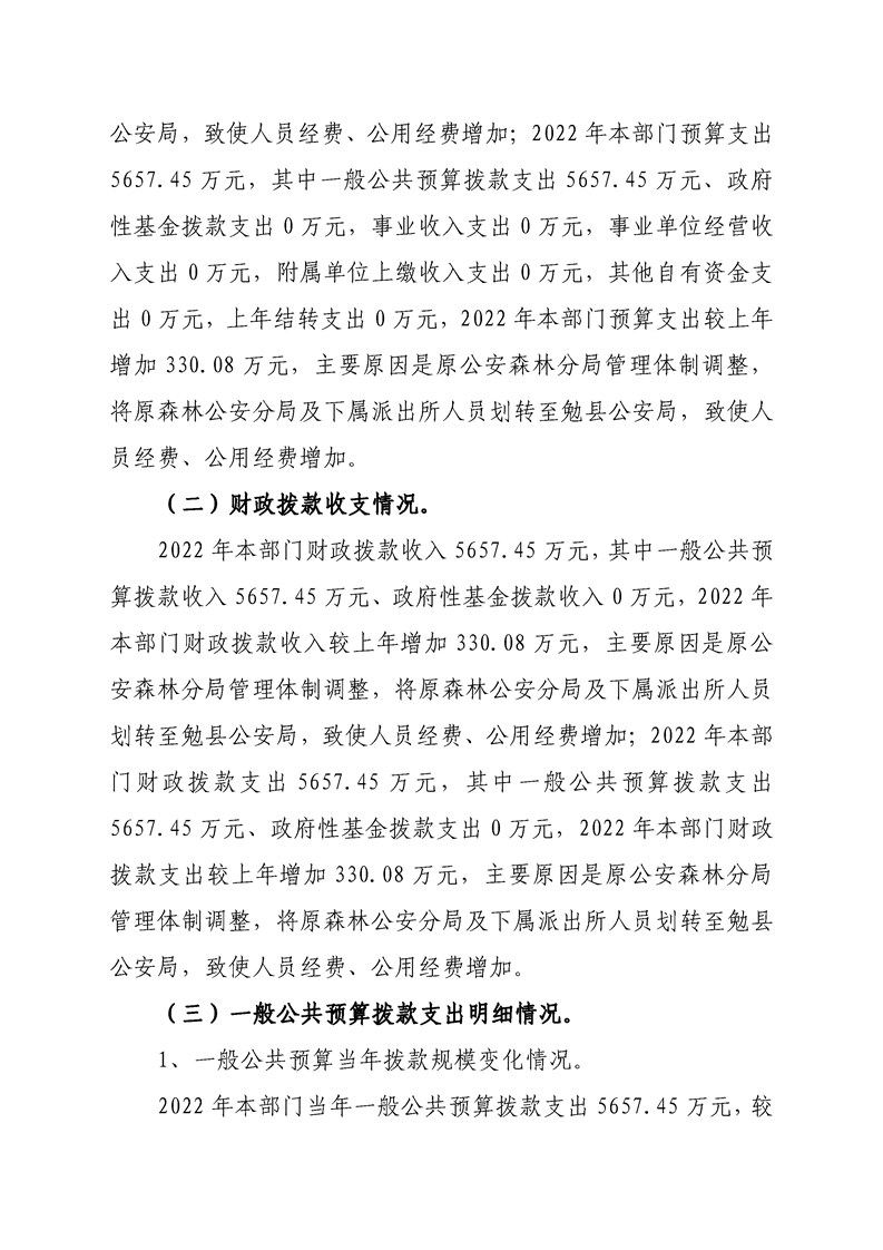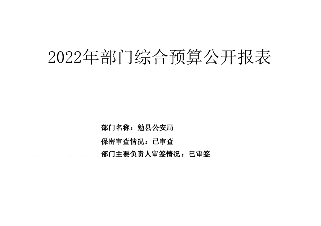 勉县公安局2022年部门综合预算公开