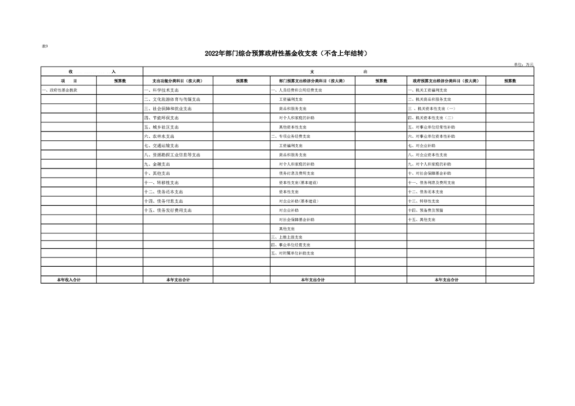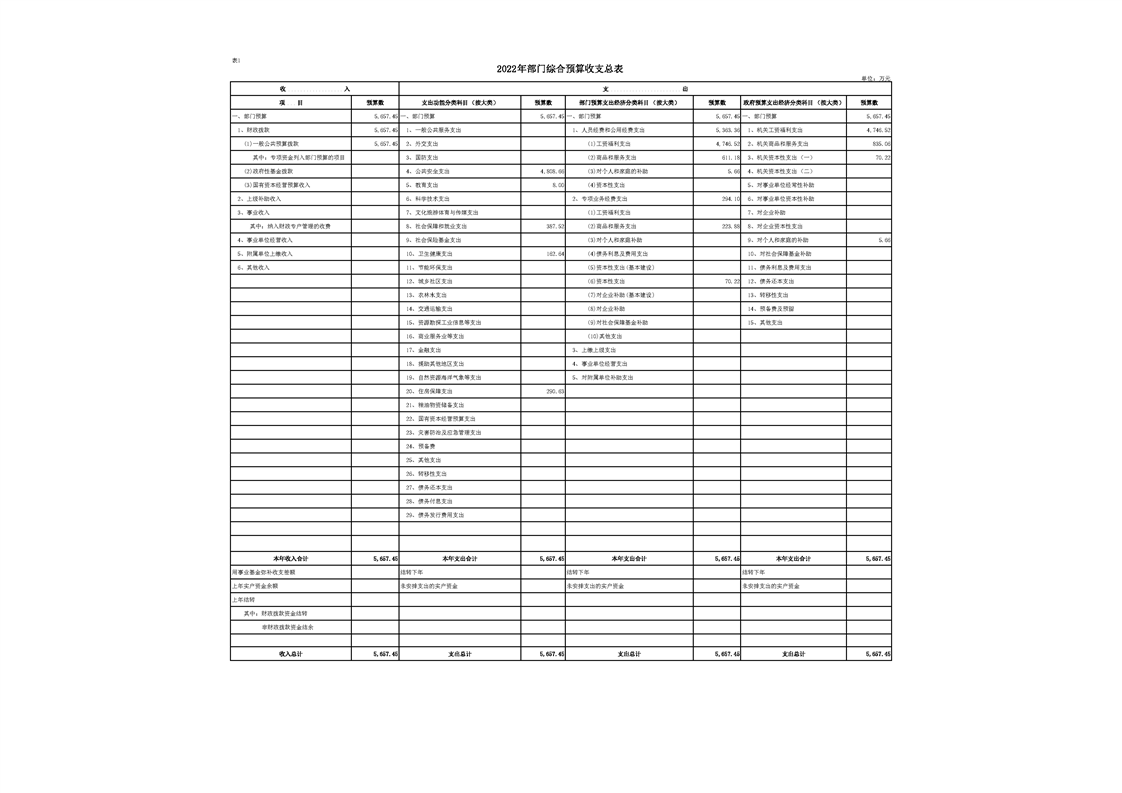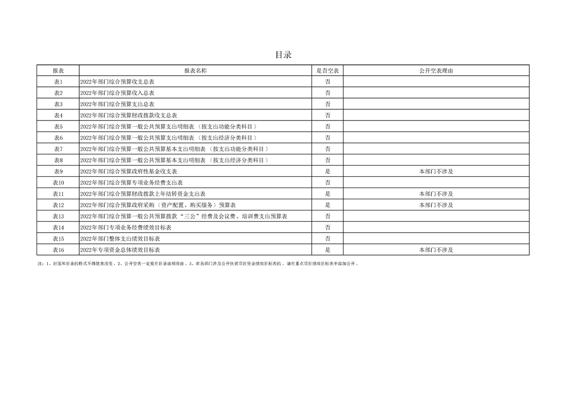 2022年县级部门预算公开目录