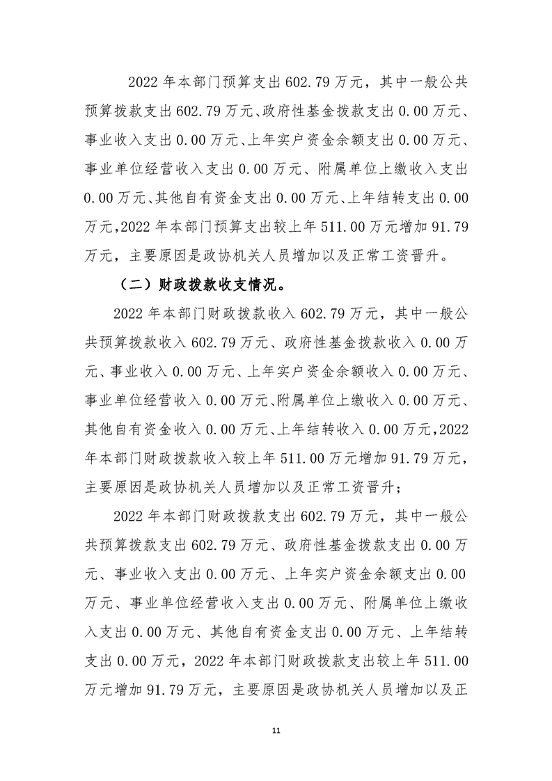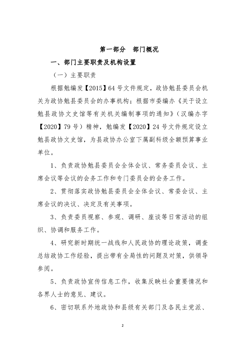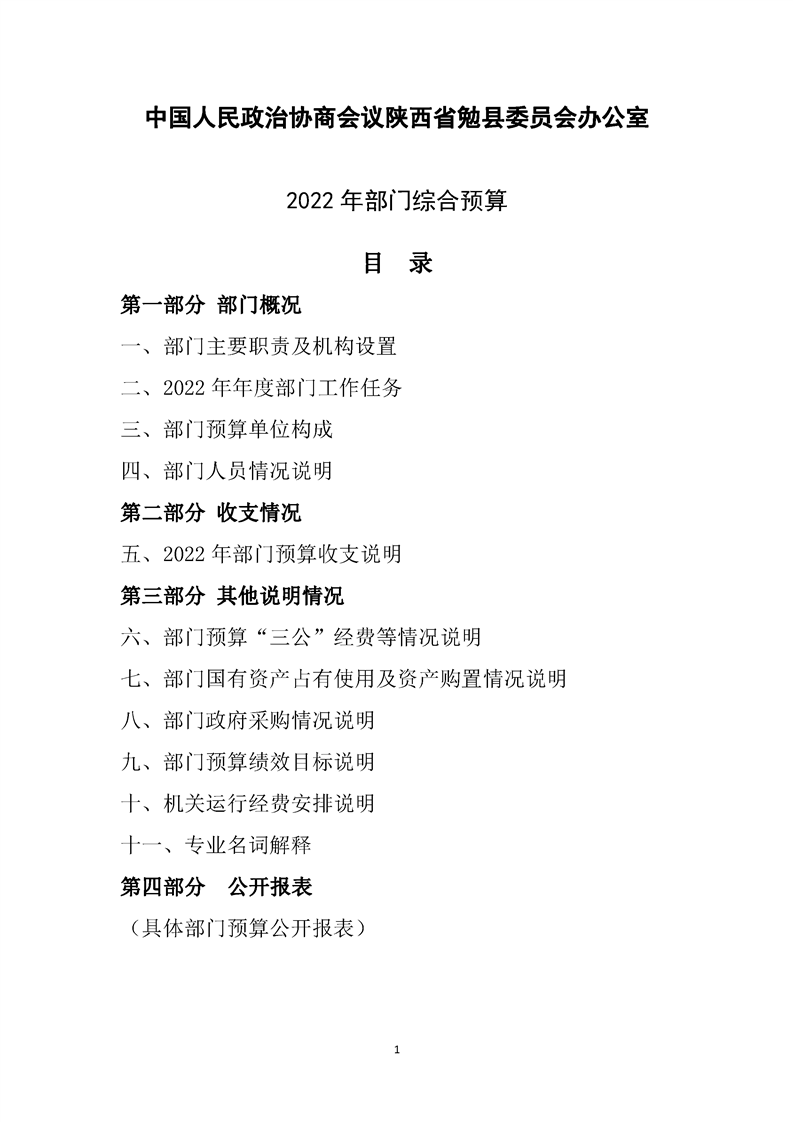 中国人民政治协商会议勉县委员会办公室2022年部门综合预算公开