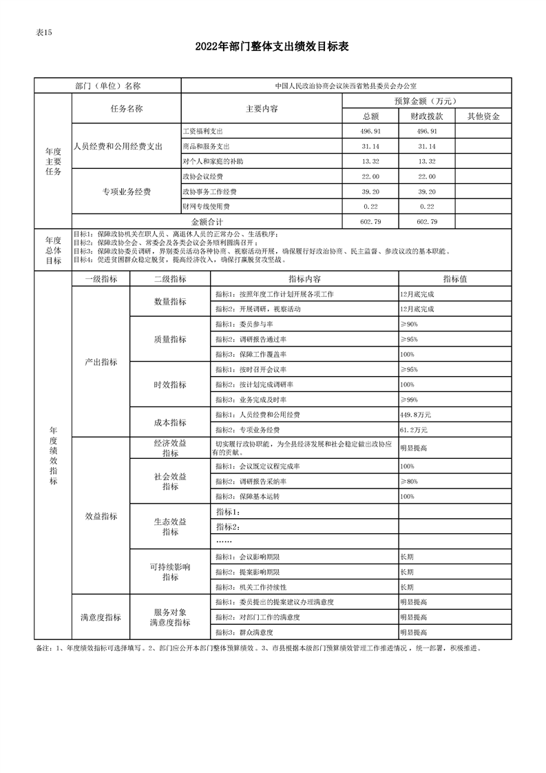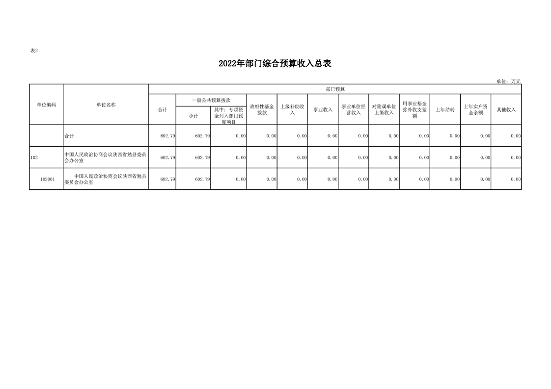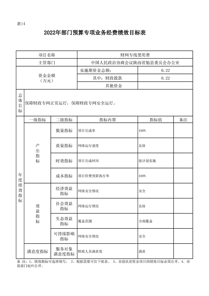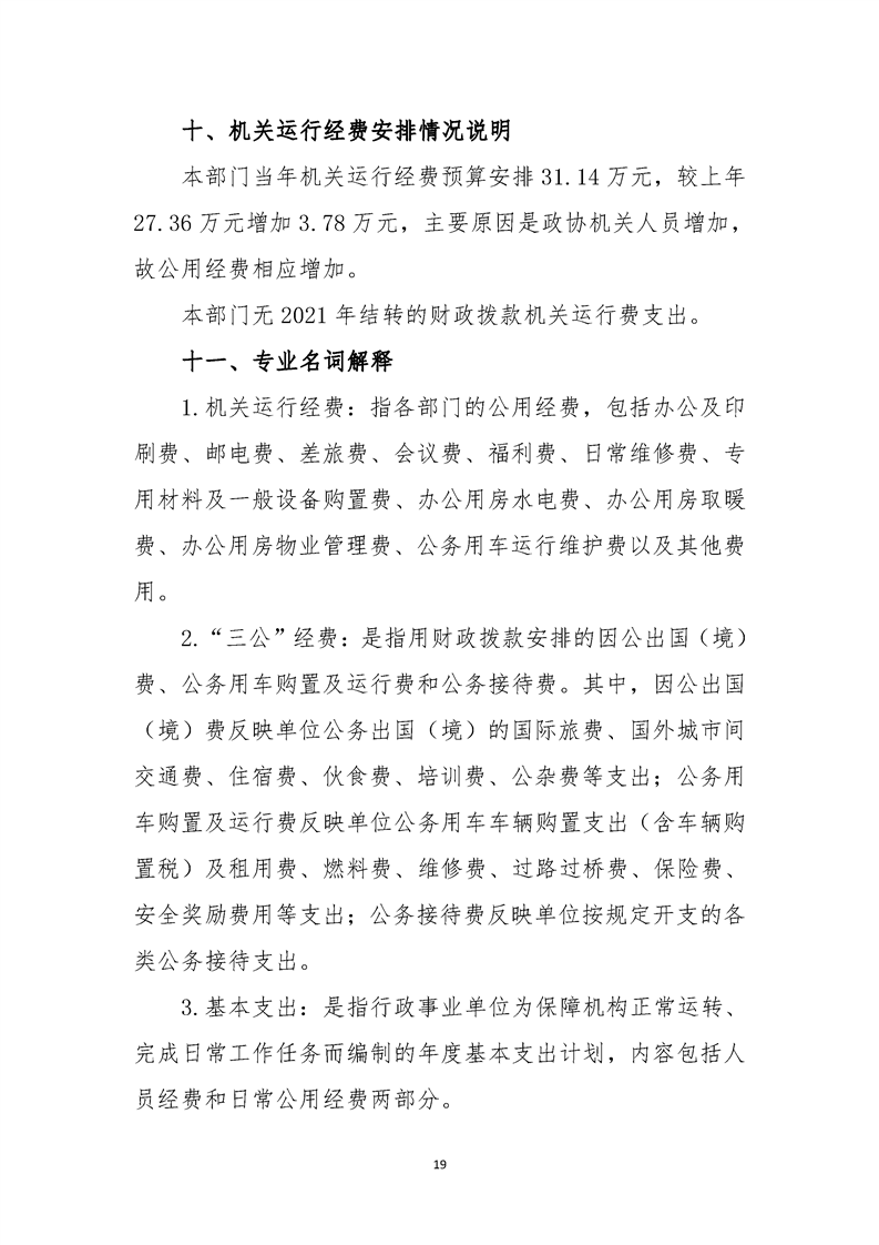 中国人民政治协商会议勉县委员会办公室2022年部门综合预算公开