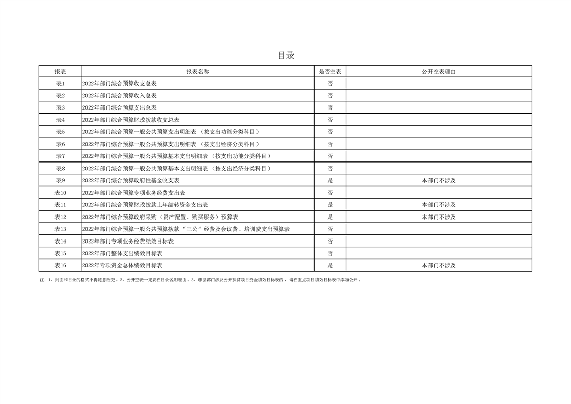 2022年县级部门预算公开目录
