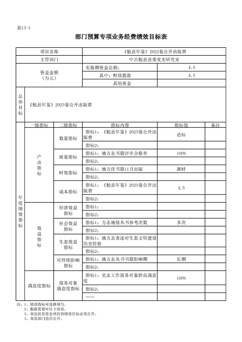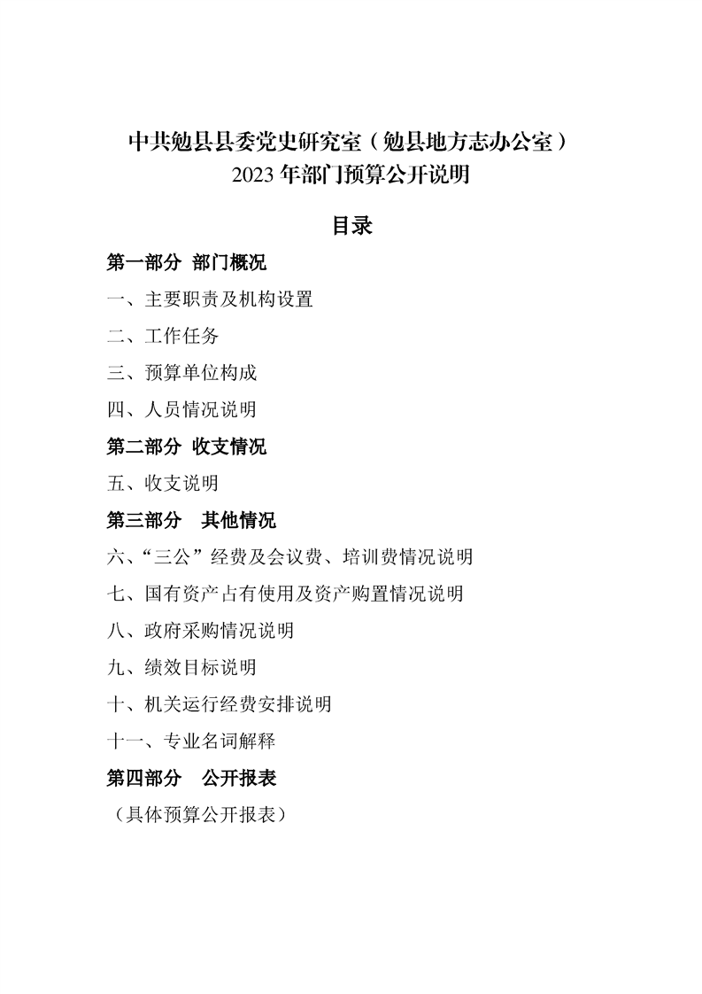 中共勉县县委党史研究室(勉县地方志办公室)2023年部门预算公开说明