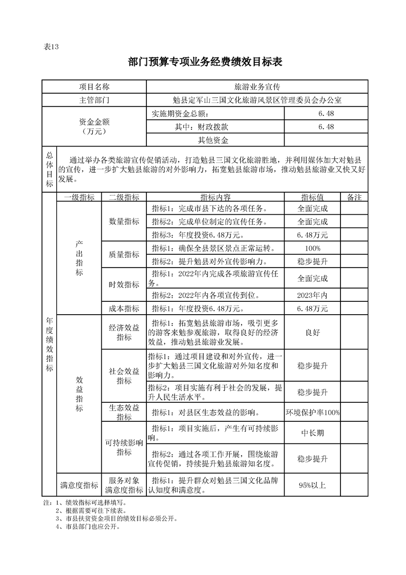 勉县定军山三国文化旅游风景区管理委员会办公室2023年部门预算公开说明