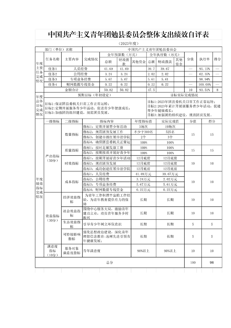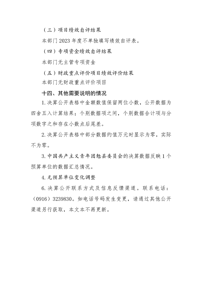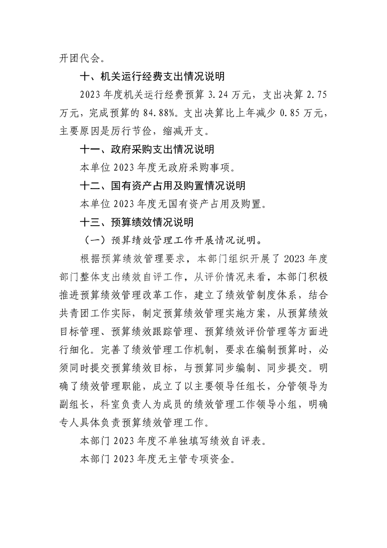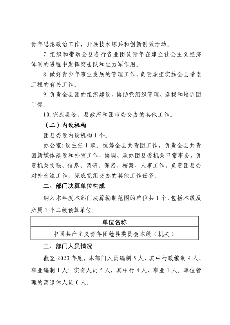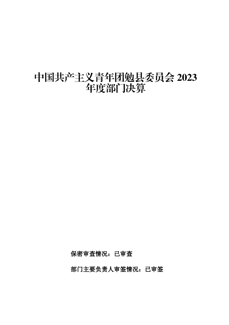 中国共产主义青年团勉县委员会2023年度部门决算公开